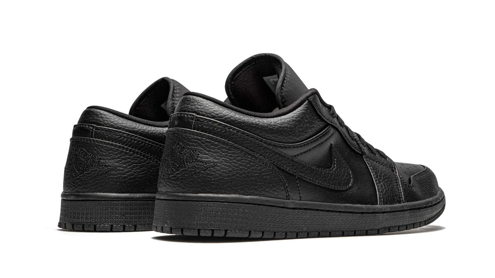The Air Jordan 1 Low ��Triple Black�� is a versatile option for collectors who appreciate the timeless styling of Michael Jordan��s first signature shoe in the alternate low-top height. A reliable everyday shoe, the ��Triple Black�� Air Jordan 1 Low hides dirt easily due to its black monochromatic appearance. Details include black tumbled leather overlays on the forefoot, eyelets, collar, and heel. A variety of smooth black leather can be found on the perforated toe and mid-panel. Black tumbled leather Swoosh branding is located on either side of the shoe. Other design elements include a black embroidered ��Wings�� logo on the heel, tonal ��23�� insignia on the lace overlay, and tonal Jumpman detailing on the black nylon tongue.