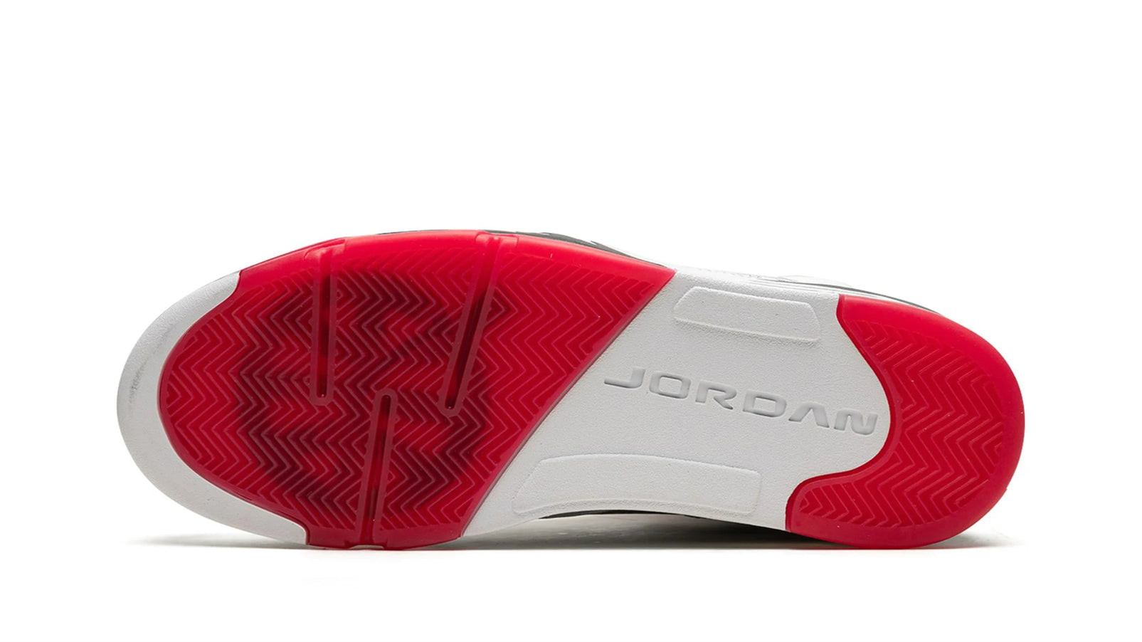 White/red leather Air Jordan 5 Retro Q54 from JORDAN featuring signature Jumpman motif, contrasting panel detail, round toe, front lace-up fastening, ankle-length, branded insole and rubber sole. These styles are supplied by a premium sneaker marketplace. Stocking only the most sought-after footwear, they source and curate some of the most hard to find sneakers from around the world..