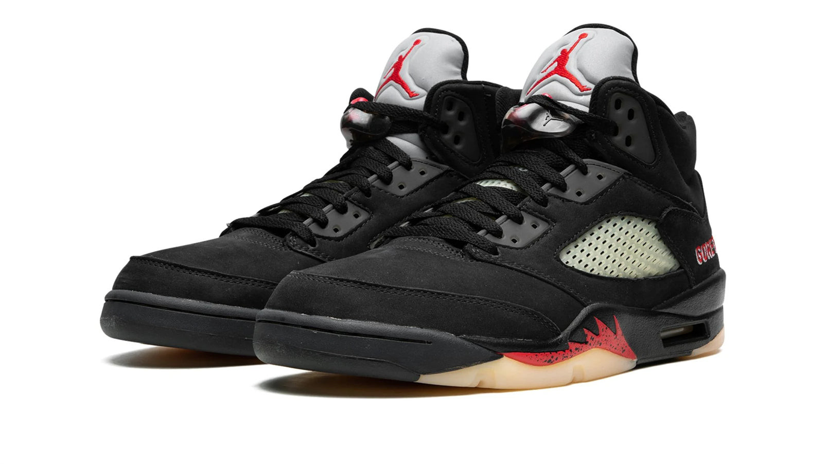 The Women��s Air Jordan 5 ��Gore-Tex�� is a women��s-exclusive colorway of Michael Jordan��s fifth signature shoe that updates its timeless design with water-resistant properties. Inspired by the Jordan 5��s ��Black Metallic�� colorway, the ��Gore-Tex�� features the same black, white, and red color scheme as the former, but updates its build with water-resistant Gore-Tex lining. The shoe��s black synthetic nubuck upper is resistant against the elements. Red ��Gore-Tex�� branding is embroidered on the lateral side of the left shoe while ��23�� branding is embroidered on the right side of the right shoe. A red Jumpman appears on the reflective tongue. The black midsole features red shark tooth detailing.