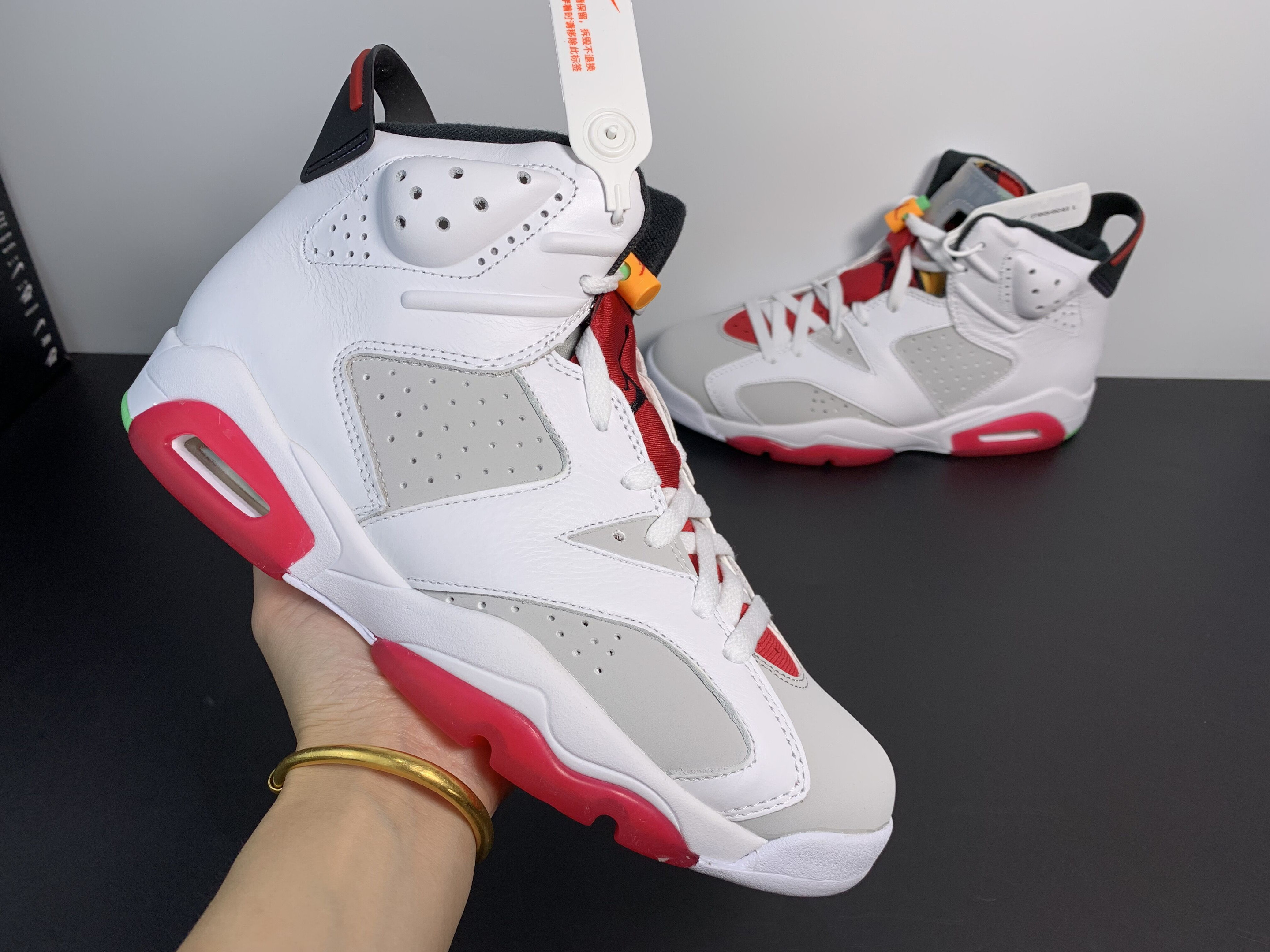 Branding: The Jumpman logo is featured prominently, alongside the Bugs Bunny details, making it a playful yet authentic Jordan 6 release.
