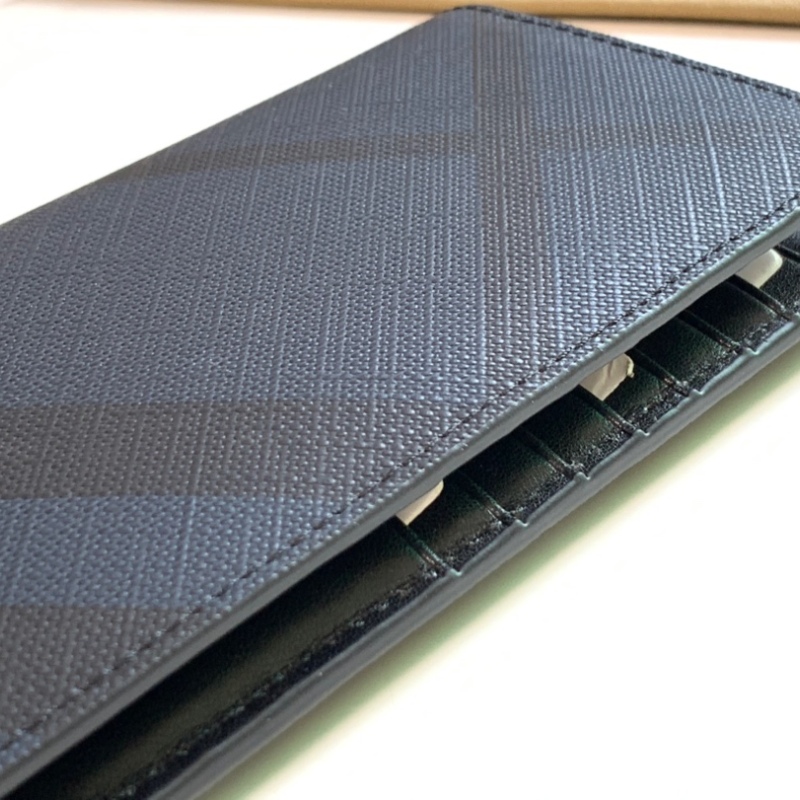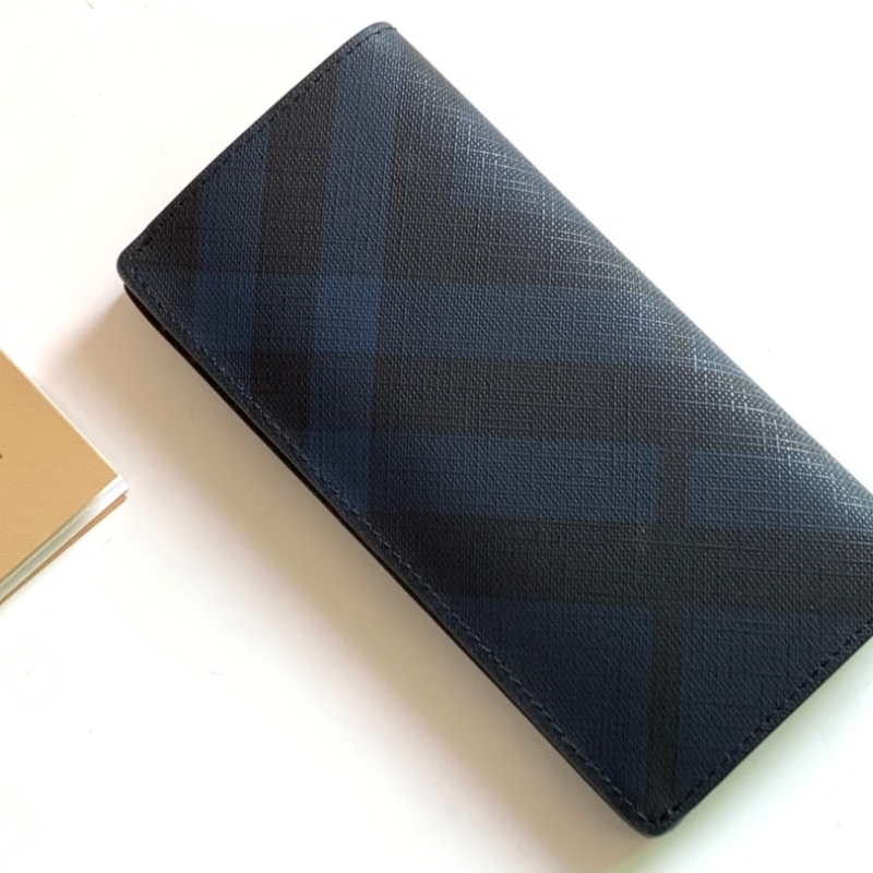 Burberry London Plaid Two-Fold Bag Grain Calfskin Material Blue ZAZ