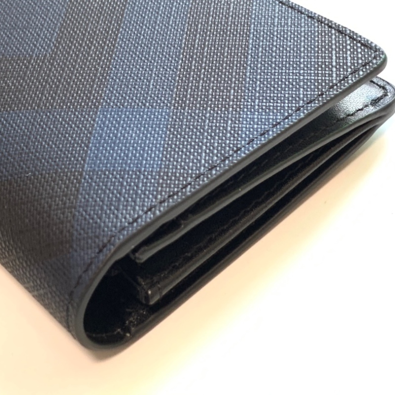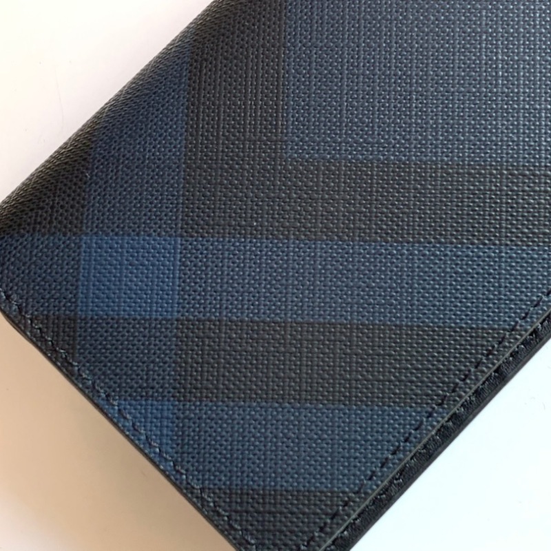 • Burberry London Plaid Two-Fold Bag Grain Calfskin Material Blue ZAZ