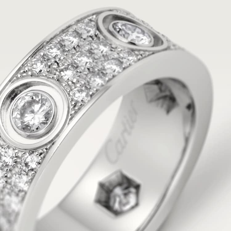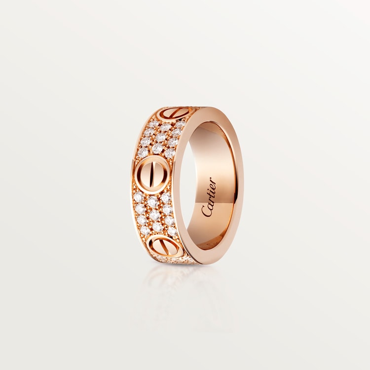 LOVE ring, 18K rose gold (750/1000), set with 66 brilliant-cut diamonds totaling 0.70 carat. Width: 6.5 mm (for size 52).