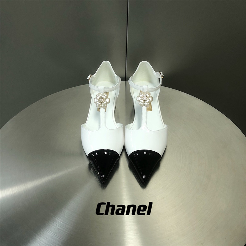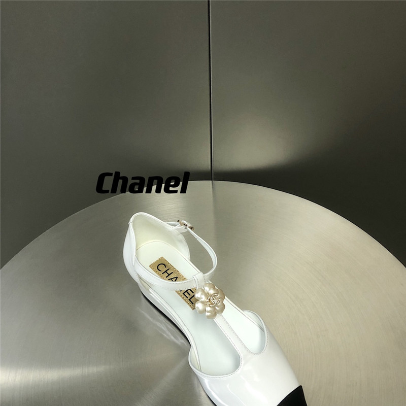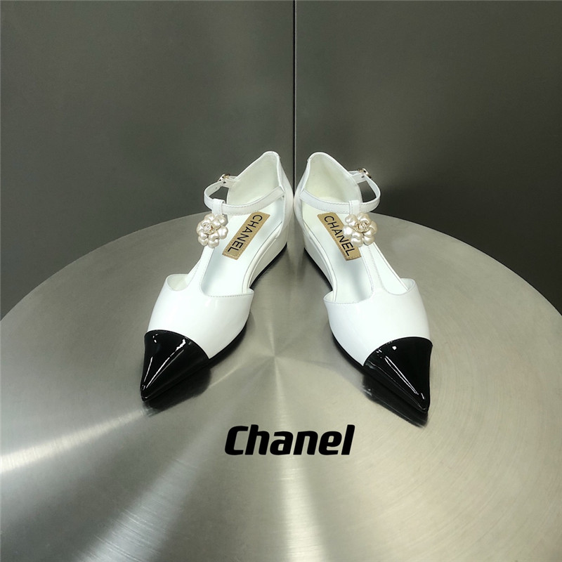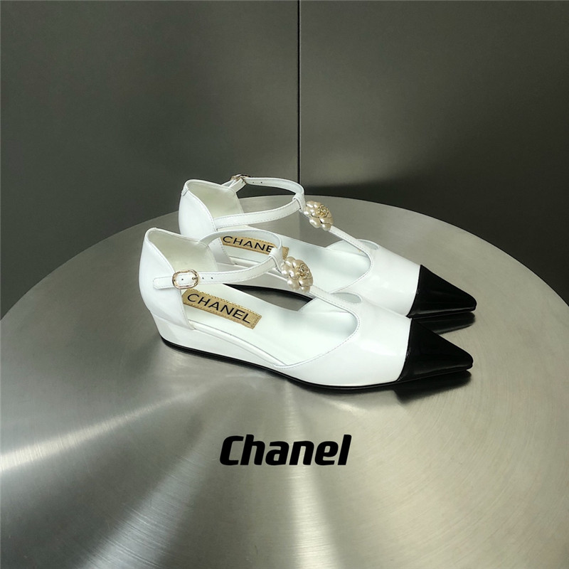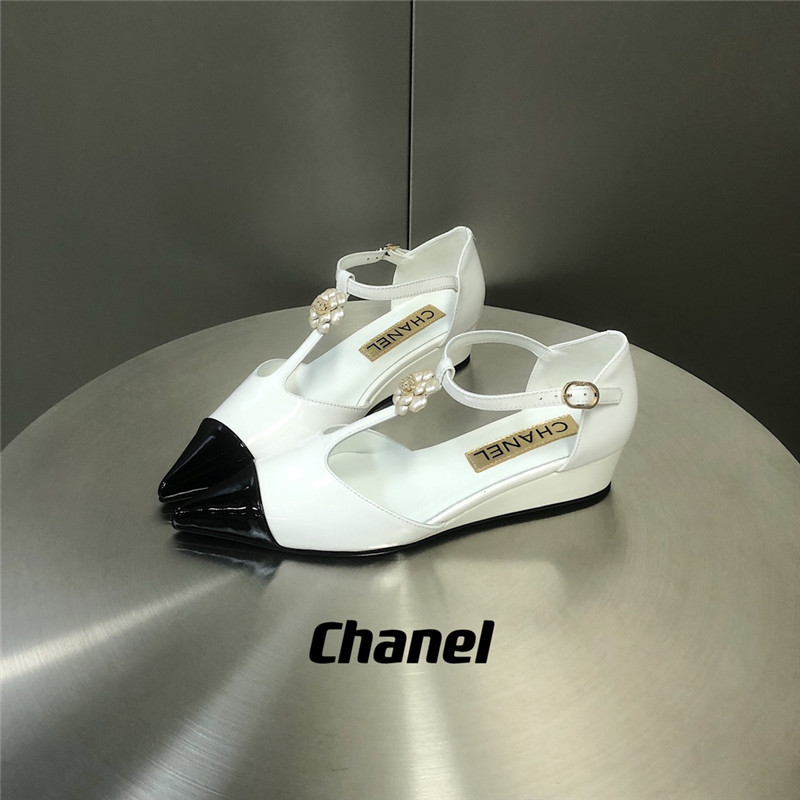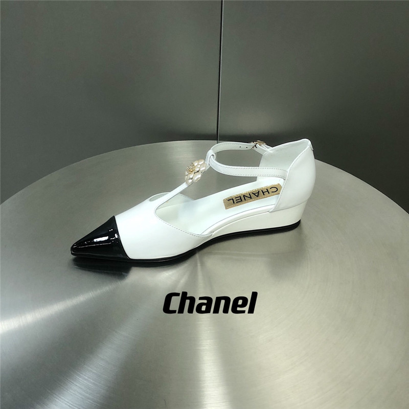 . chanel camellia wedge heel pointed toe shoes