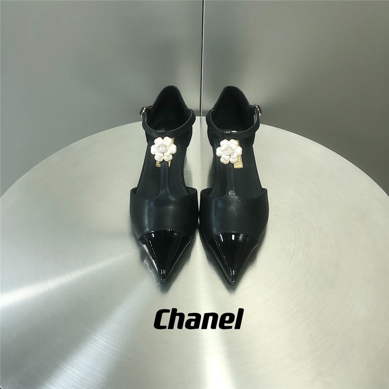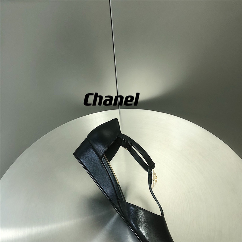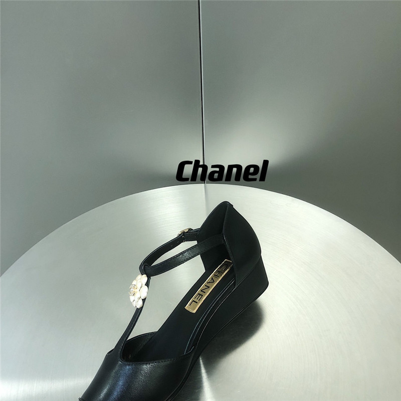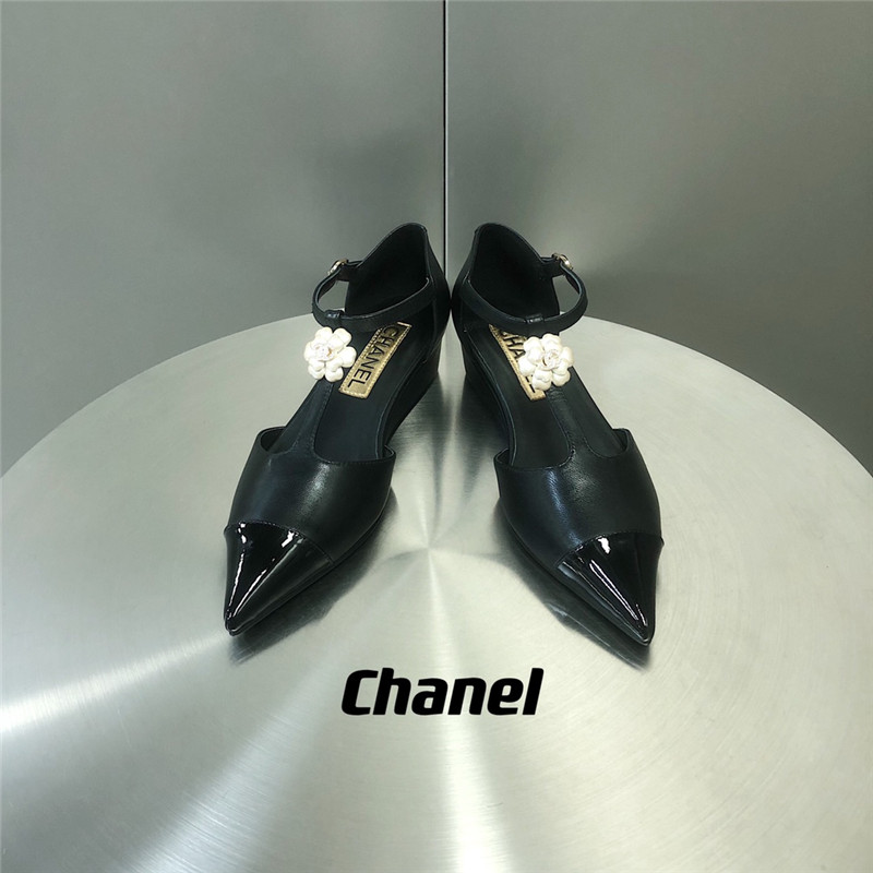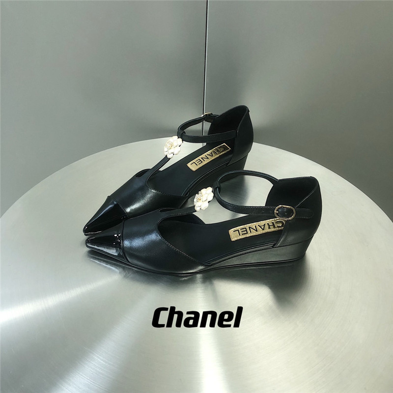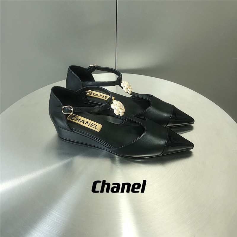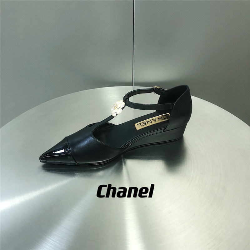 . chanel camellia wedge heel pointed toe shoes