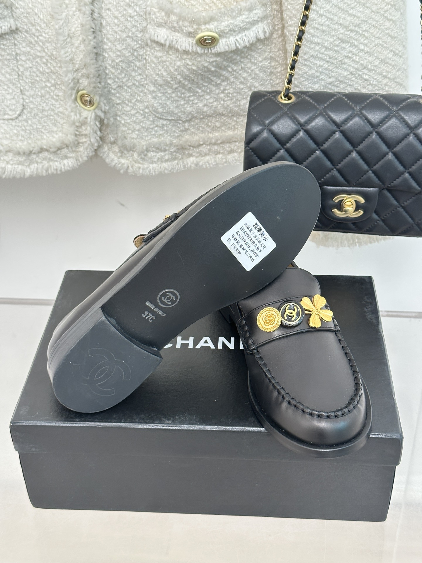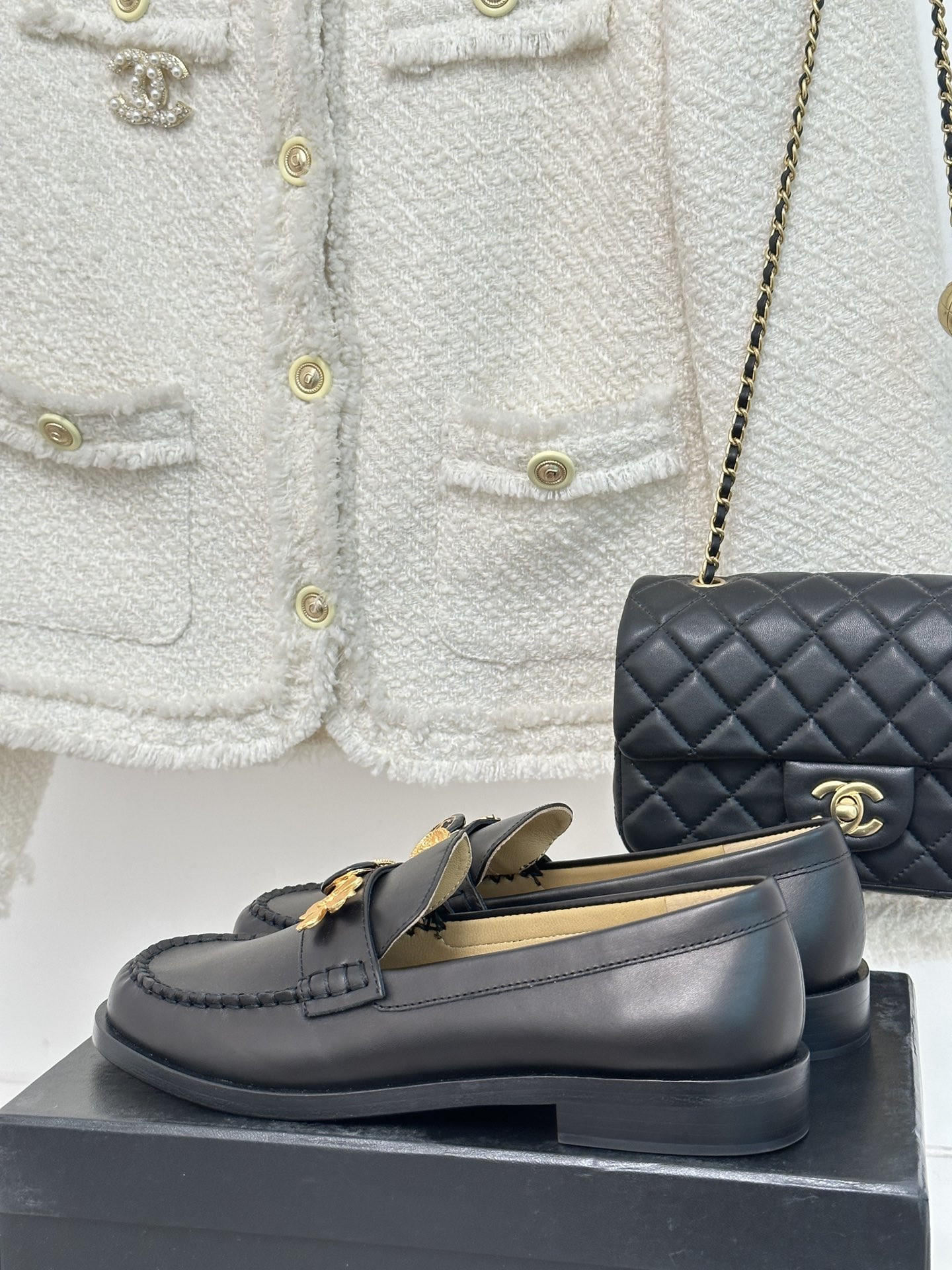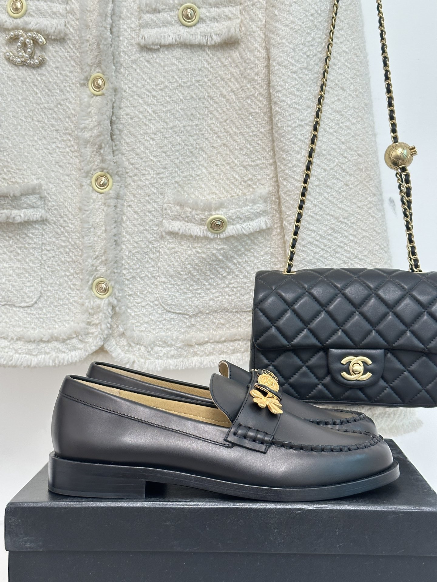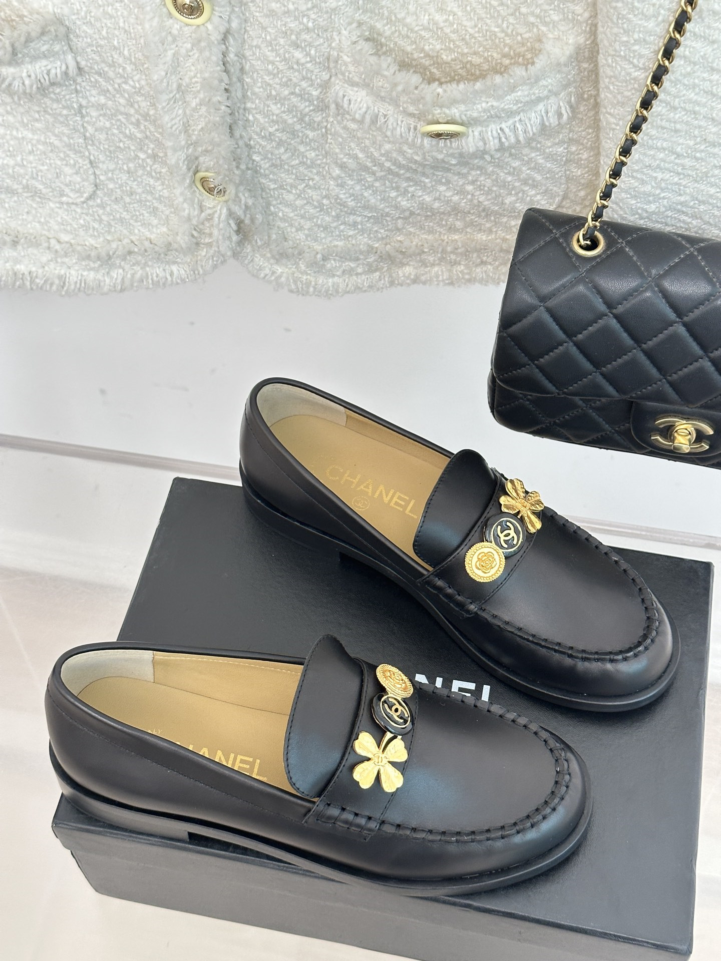 Chanel classic double C gold four-leaf clover gold coin loafers