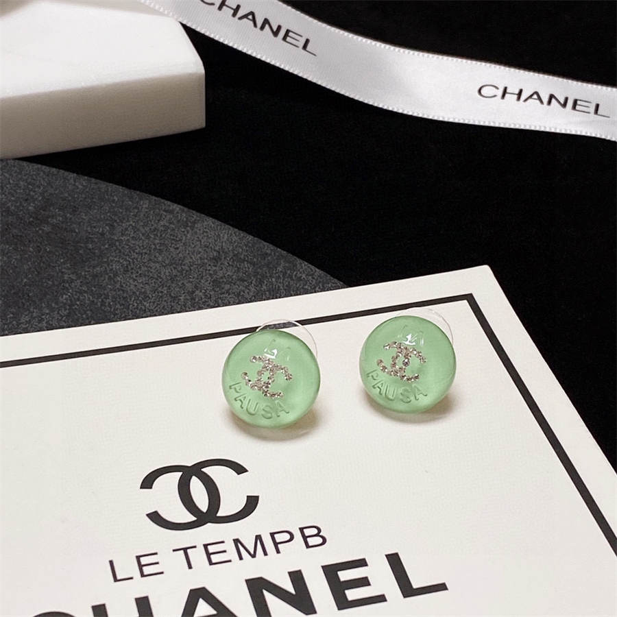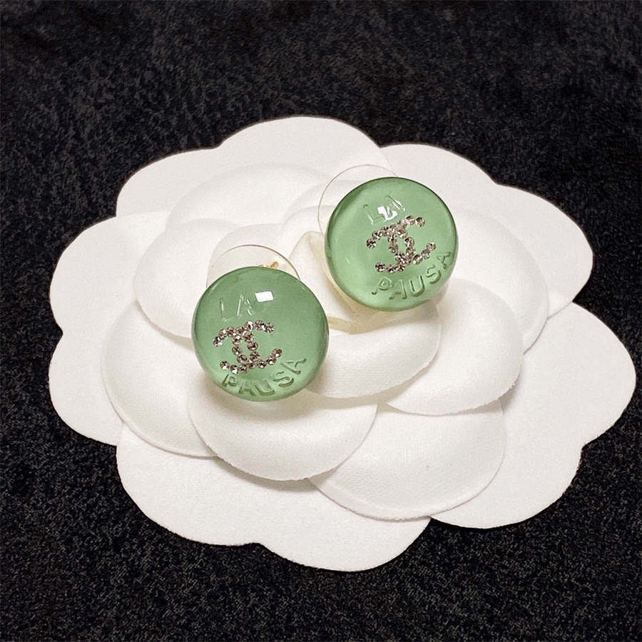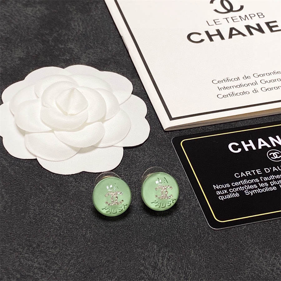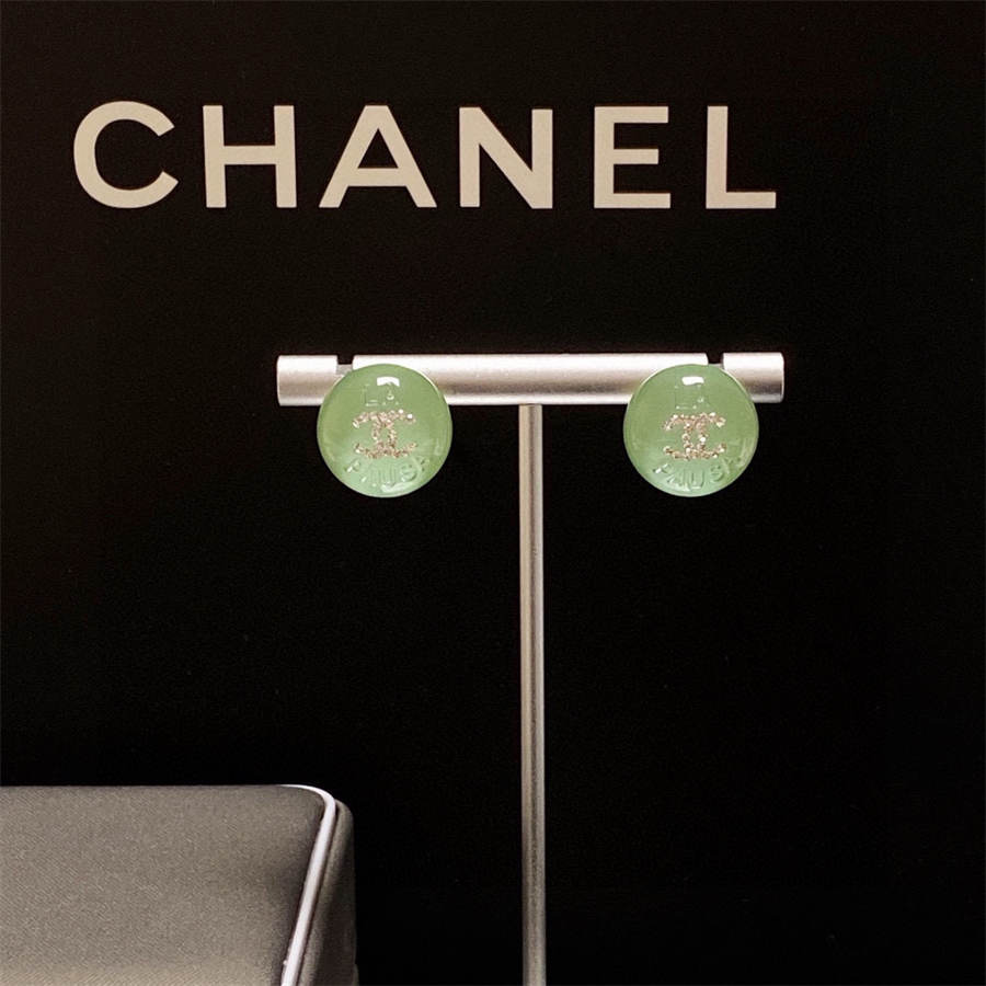 Chanel light green crystal stud earrings with diamonds DXD