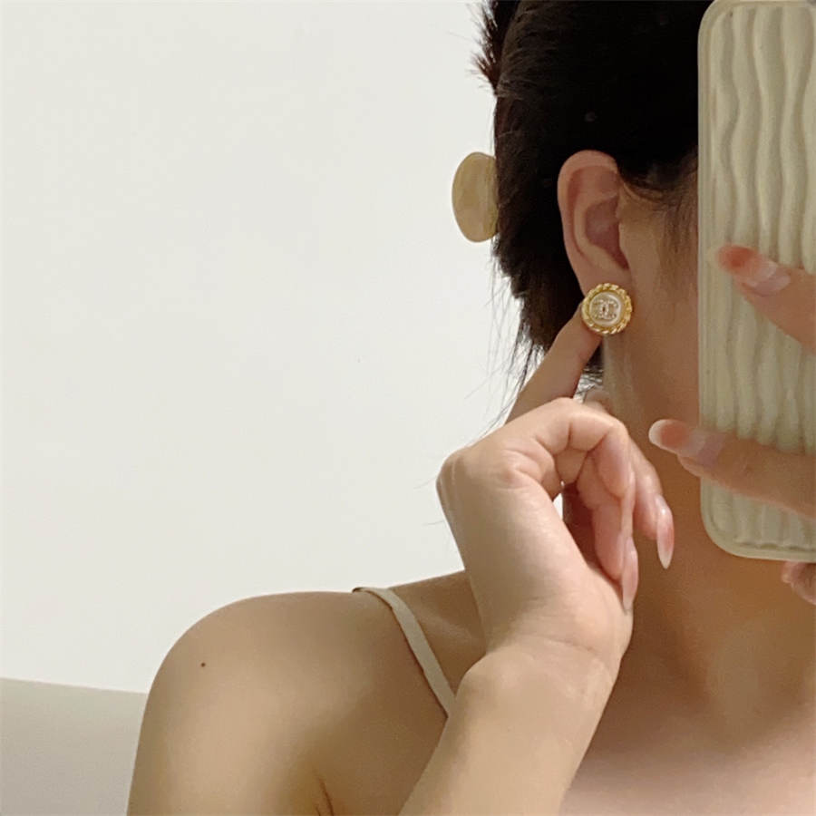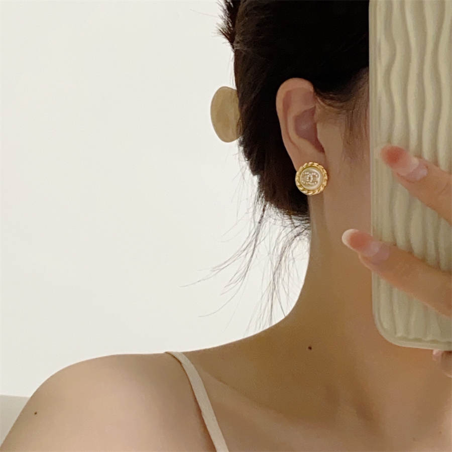 • Chanel medium antique gold double C stud earrings with diamonds DXD