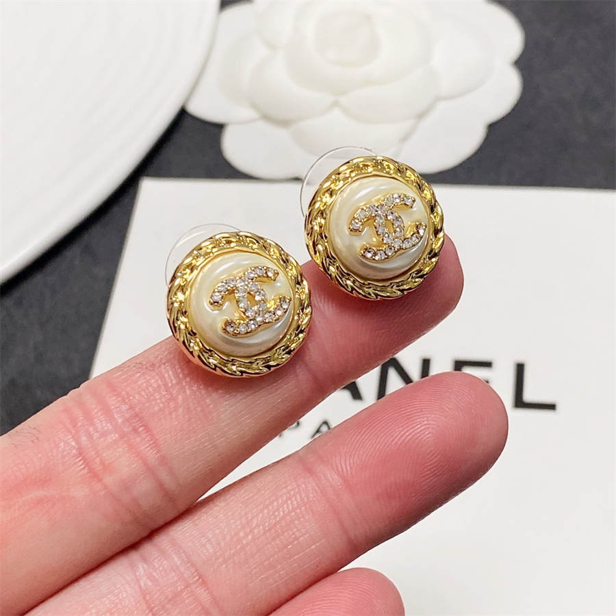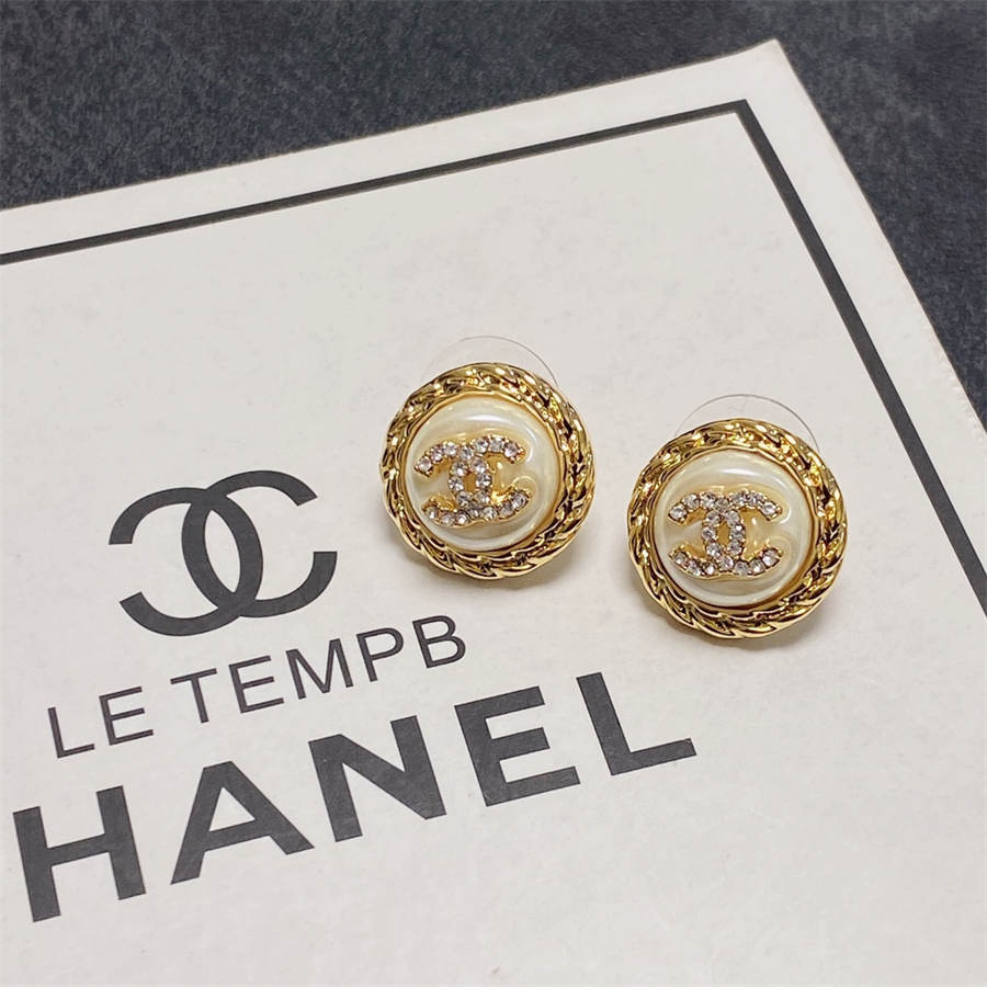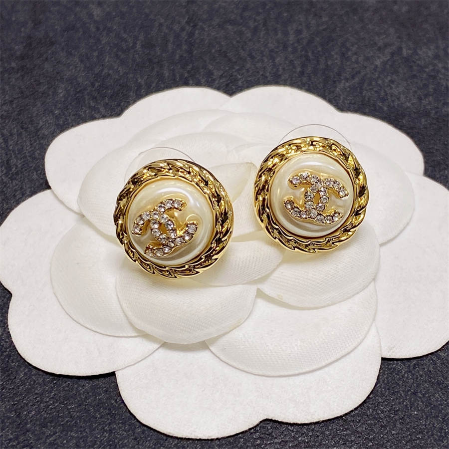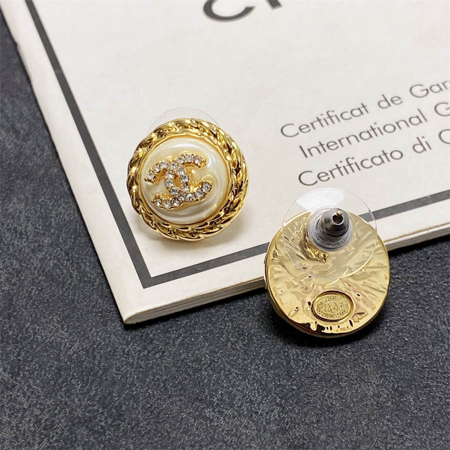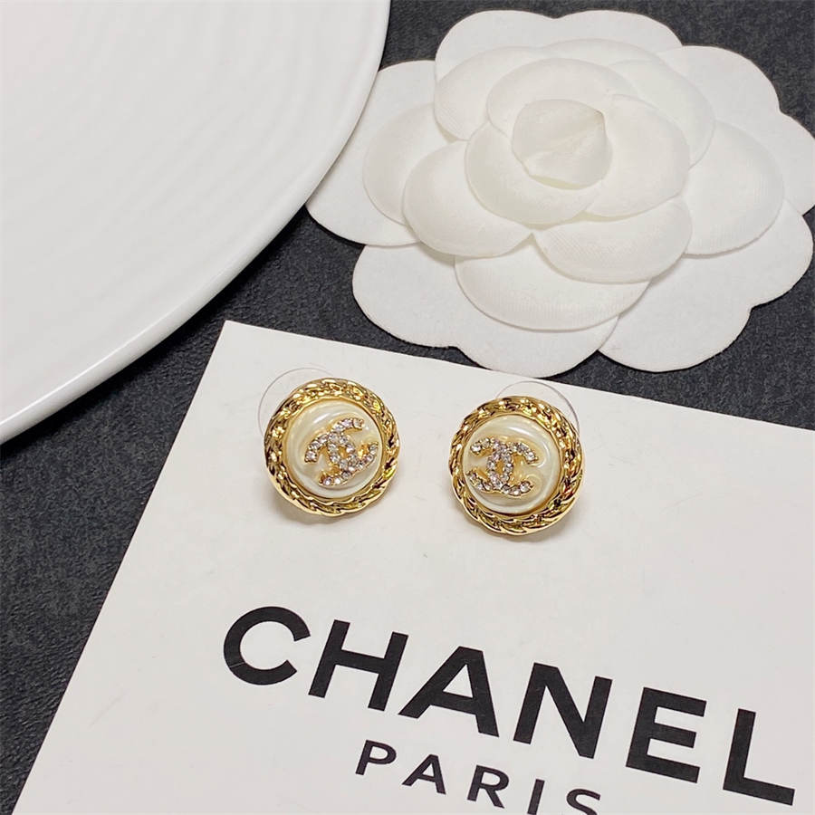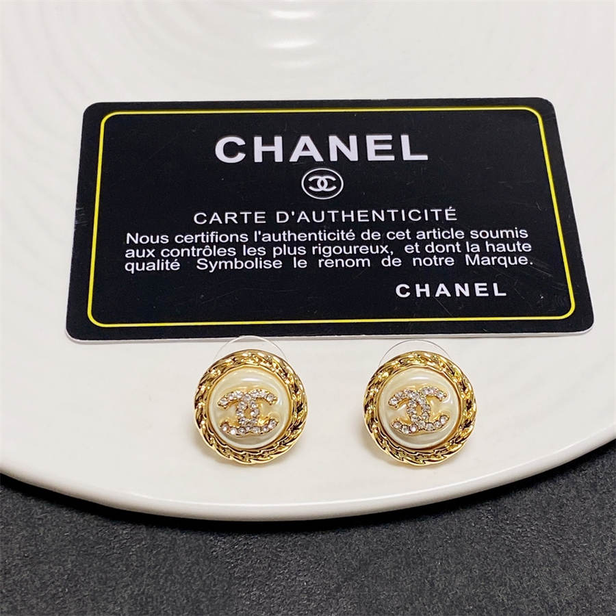 Chanel medium antique gold double C stud earrings with diamonds DXD
