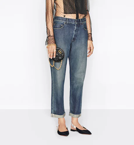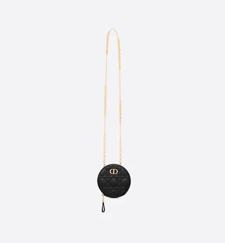 The D Caro round pouch is both elegant and versatile. Crafted in black supple calfskin with Cannage stitching. it features a zipped gusseted compartment to accommodate all the small essentials. The pouch. with its removable chain. may be worn crossbody and is ideal for day or evening wear.