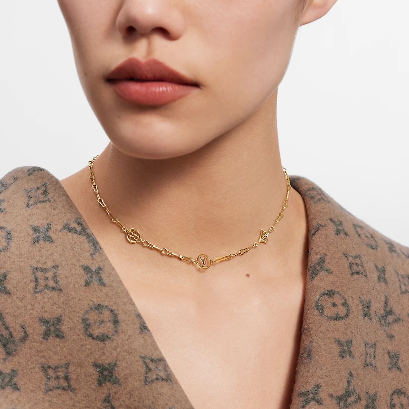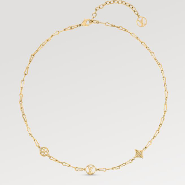 A revamped version of the LV lock chain presents a fresh design on the Forever Young necklace. Iconic House symbols such as the LV Circle and Monogram Flowers take center stage for a luxurious look. This gold-color necklace is completed with an adjustable chain for a personalized finish.