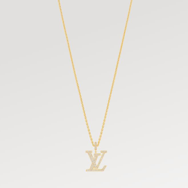 A brilliant statement: the LV Pavé Idylle Blossom pendant in 18-karat yellow gold magnifies the iconic signature created by Georges Vuitton in 1896 in tribute to his father. The LV Initials motif sparkles with the fire of more than 100 pavé diamonds; the chain adjusts to three different lengths and it can also be doubled up and worn as a choker.