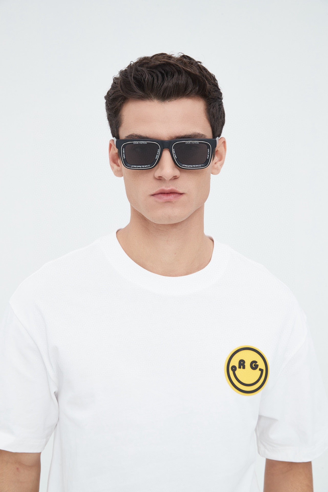 - White colour inscriptions inside the lens: LOUIS VUITTON, SINCE 1854, 2 rue du Pont Neuf, Size 50mm