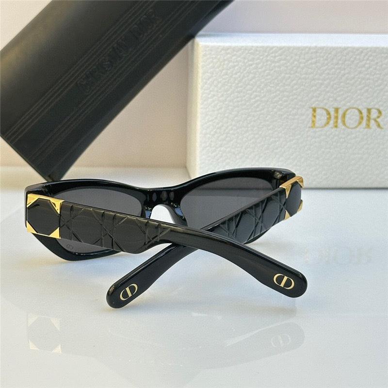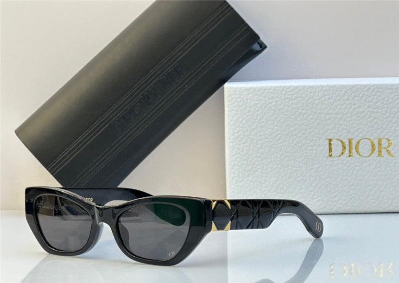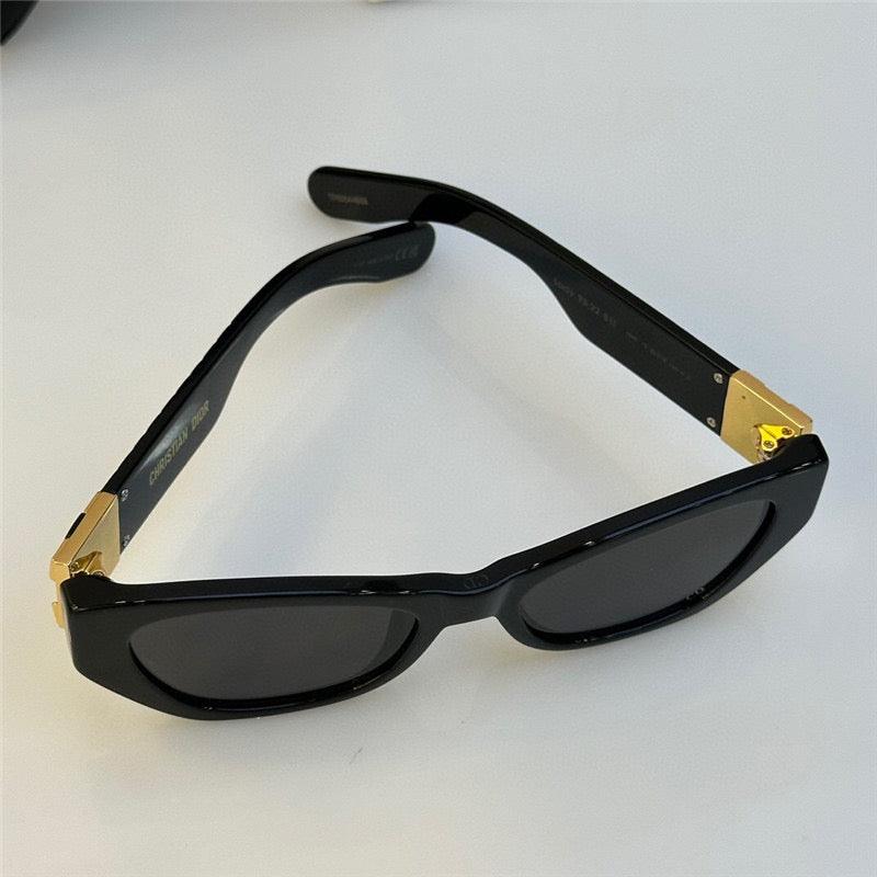 TheLady 95.22 B1I sunglasses present a modern design in black acetate with gray lenses. The elegant butterfly shape is enhanced by the Cannage motif on the temples, as well as a gold-finish metal hinge inspired by the refinement of the Lady 95.22 bag.