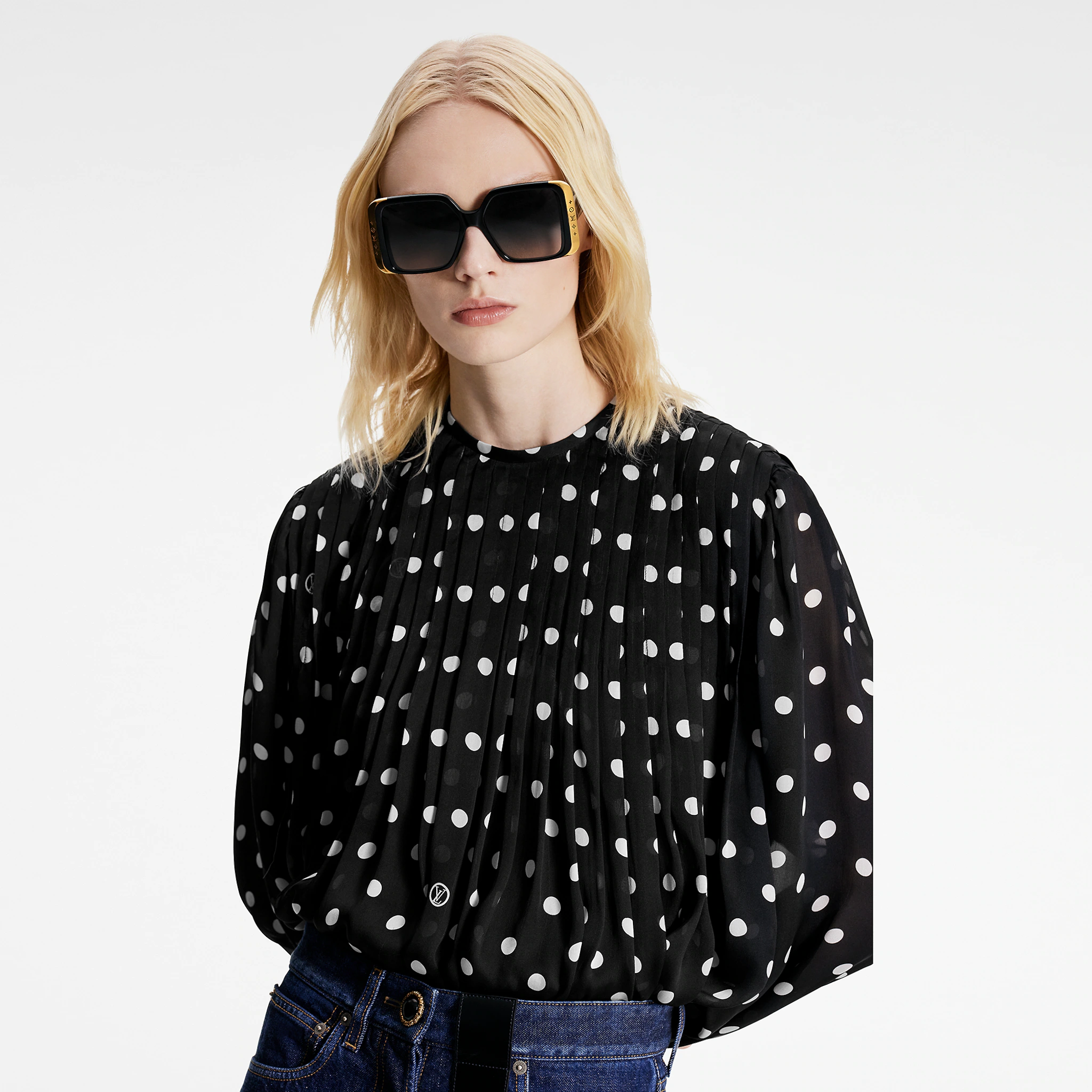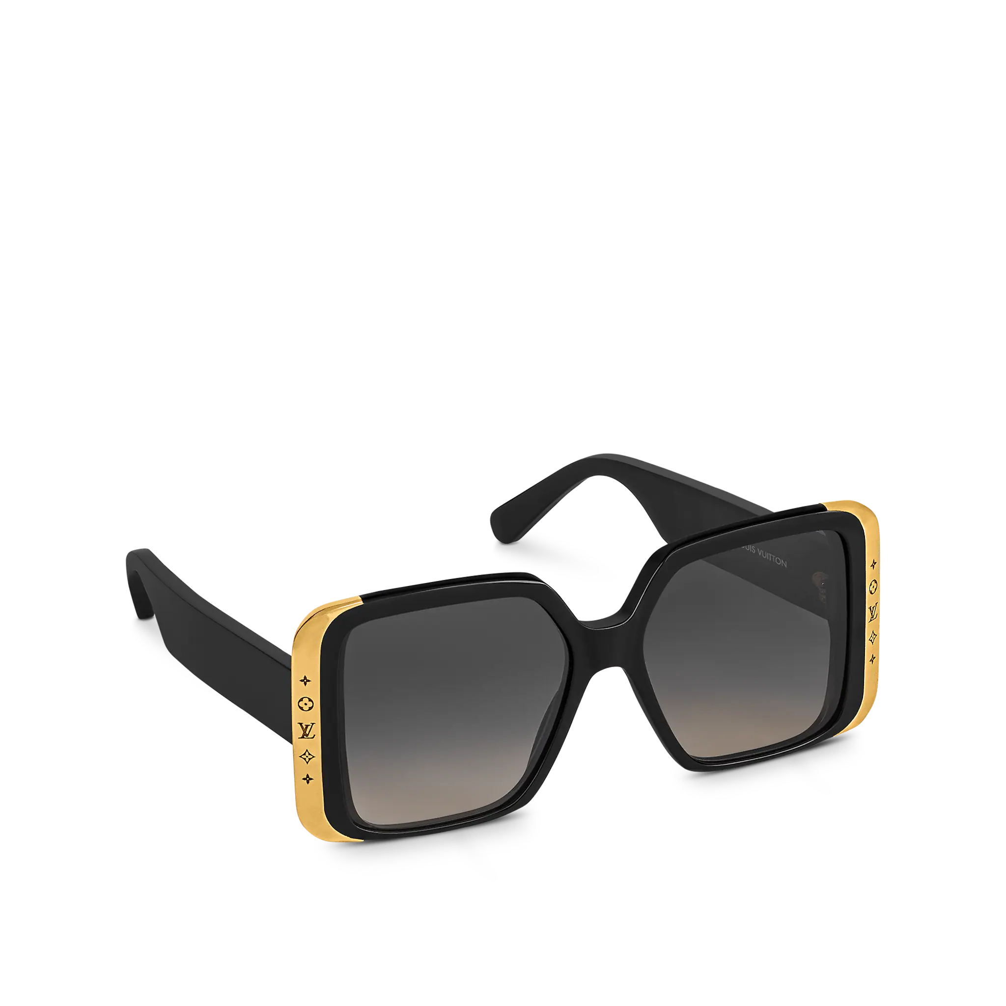 The LV Moon Square sunglasses are part of a new eyewear family. They feature an oversized shape and are engraved with the 5 Flowers signature, a motif inspired by the Coussin Bag's chain links. The collection also includes a cat-eye and a rectangular version.