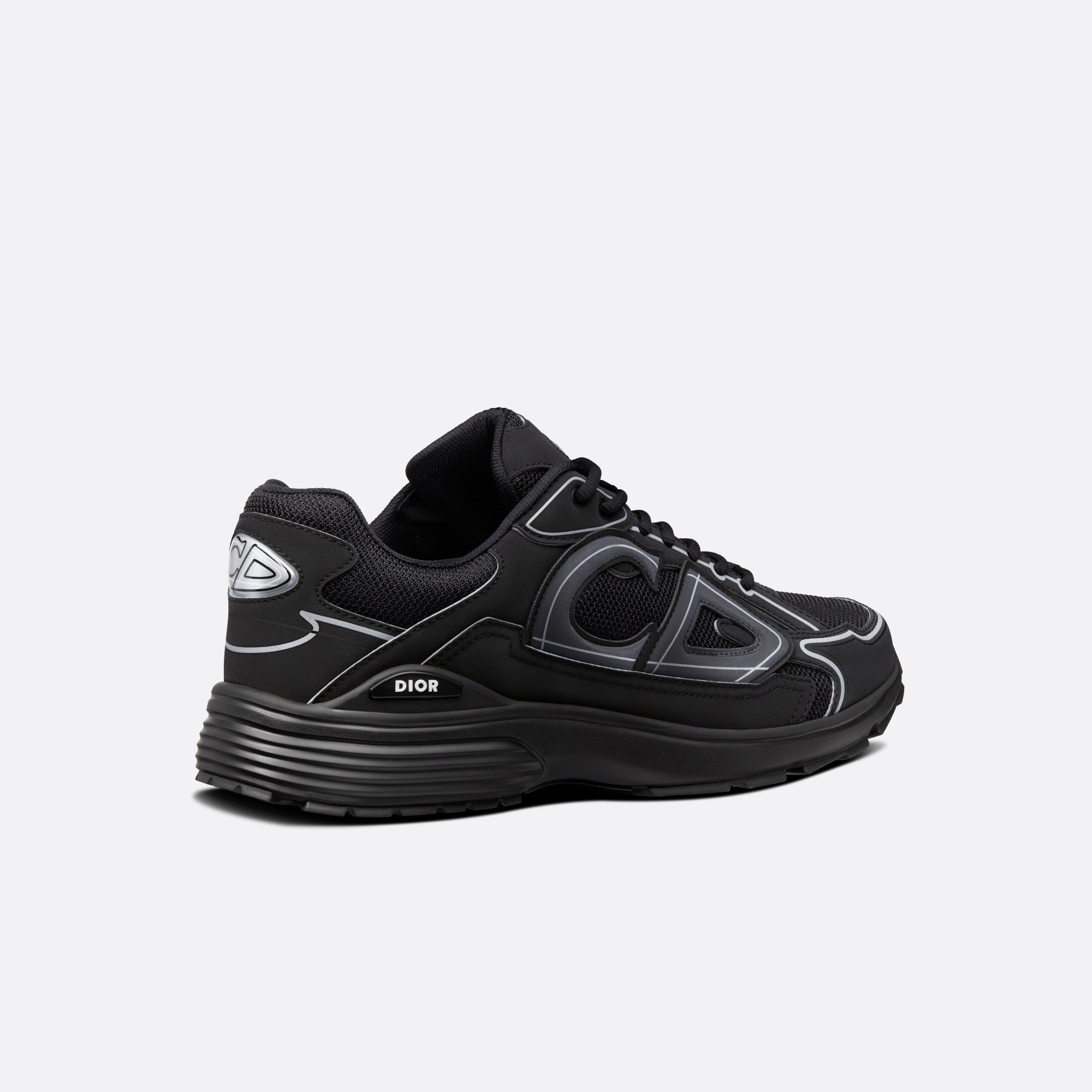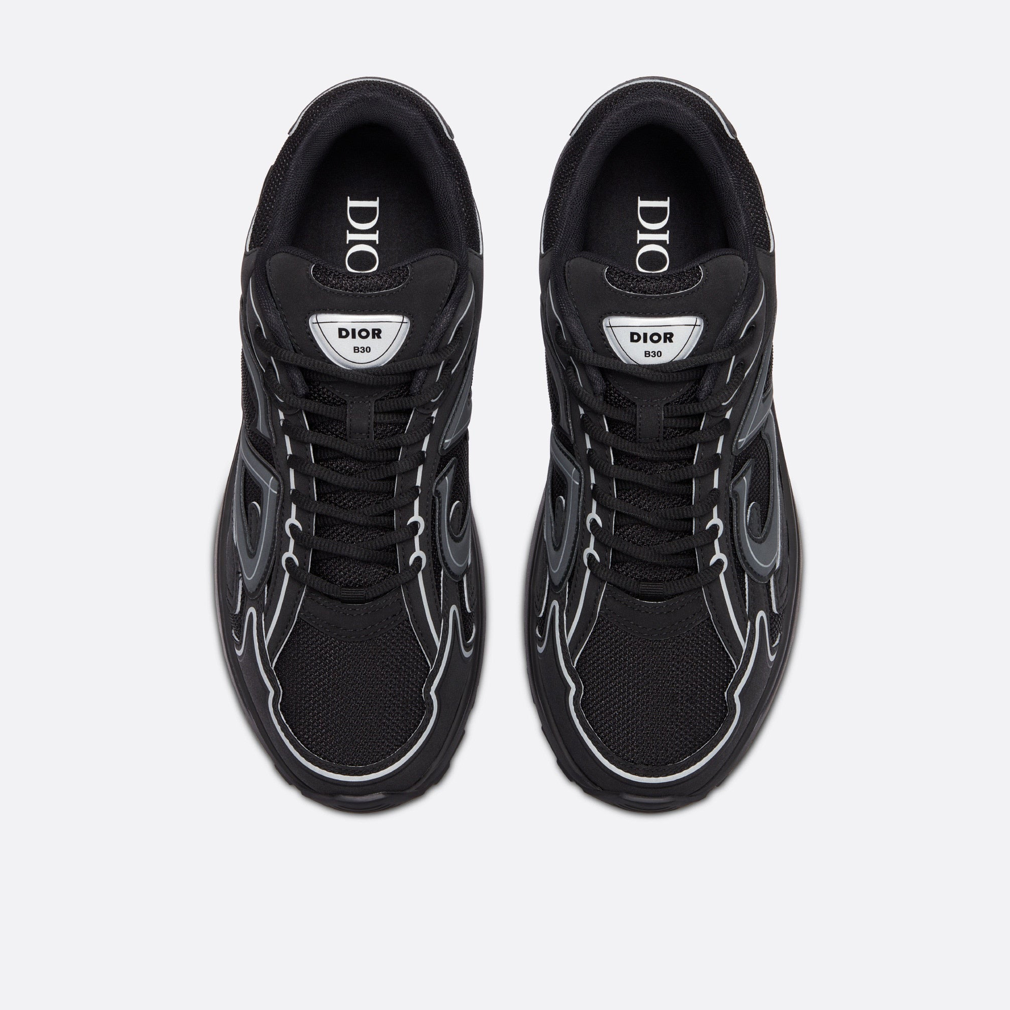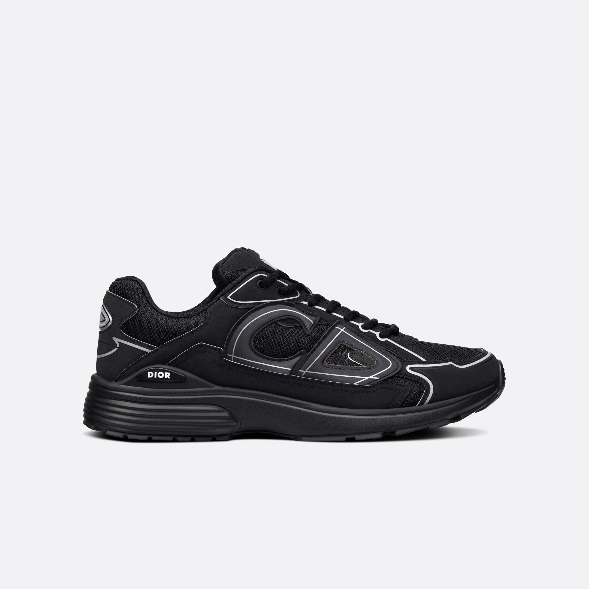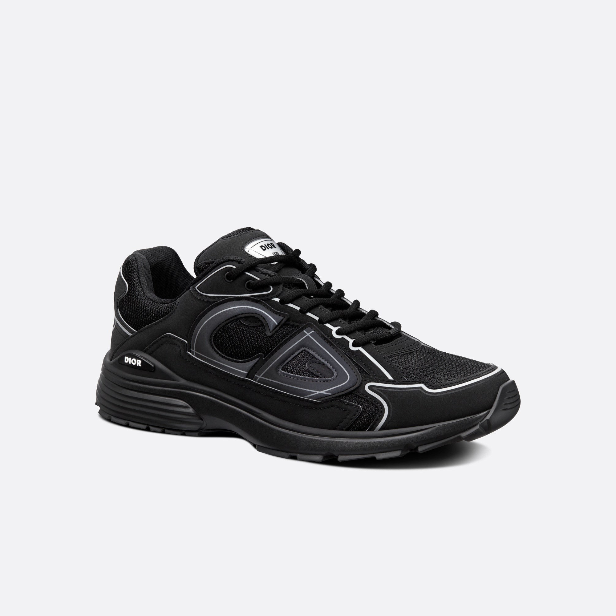 The B30 sneaker has become a new House essential distinguished by its modern and sporty silhouette. Crafted in black mesh and technical fabric, it is enhanced by a reflective tonal 'CD30' signature with a graphic aesthetic. The B30 also features silver-tone 'DIOR B30' and 'CD30' signatures on the tongue and the back of the sneaker. A sculpted and ultra-lightweight rubber outsole spotlights various hallmark details, while an elastic interior provides optimal comfort. The B30 sneaker will complete any casual outfit.