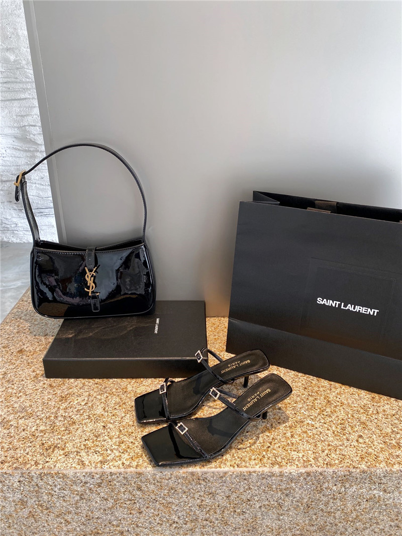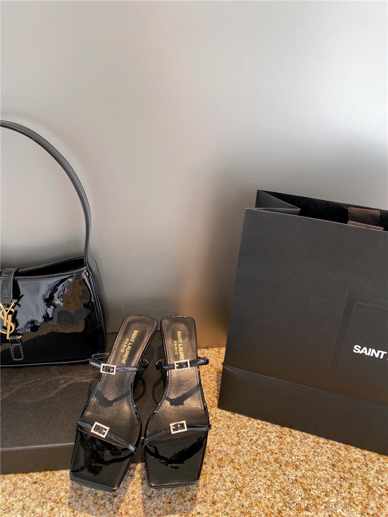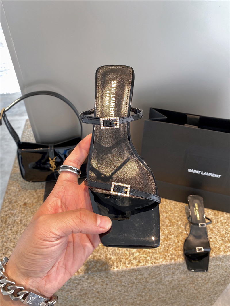 YSL new rhinestone buckle high-heeled sandals ZGZ