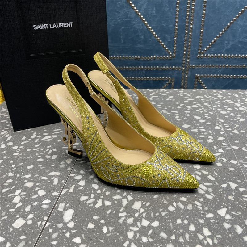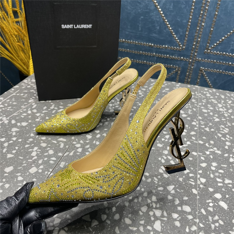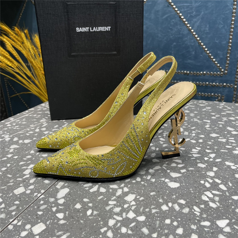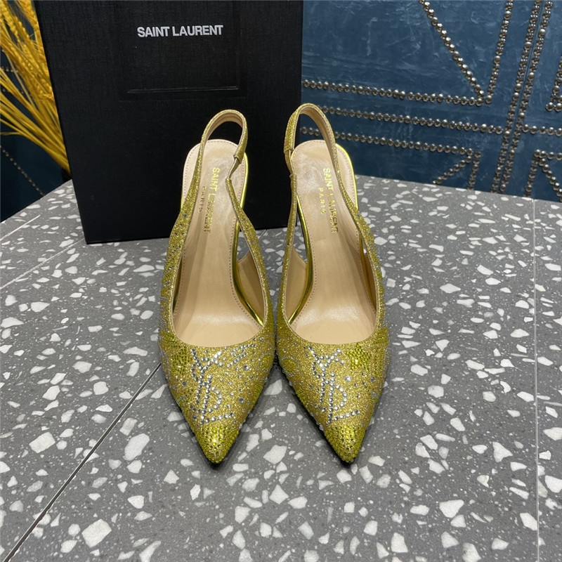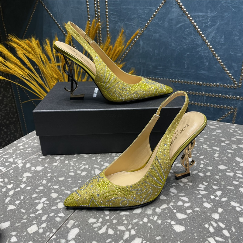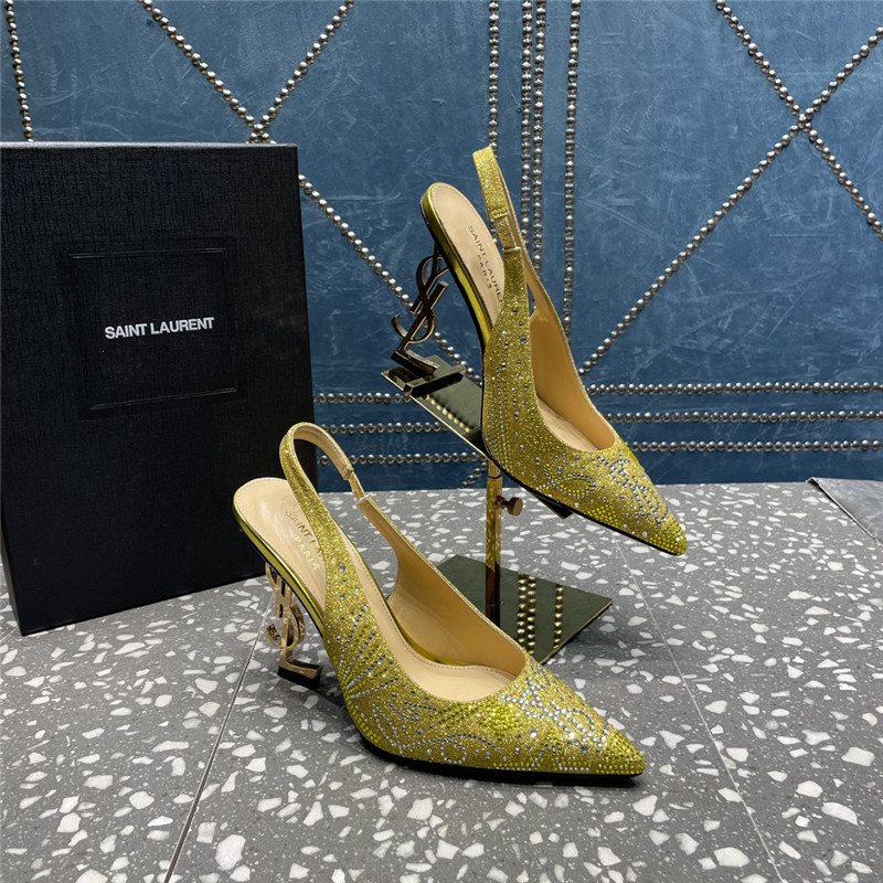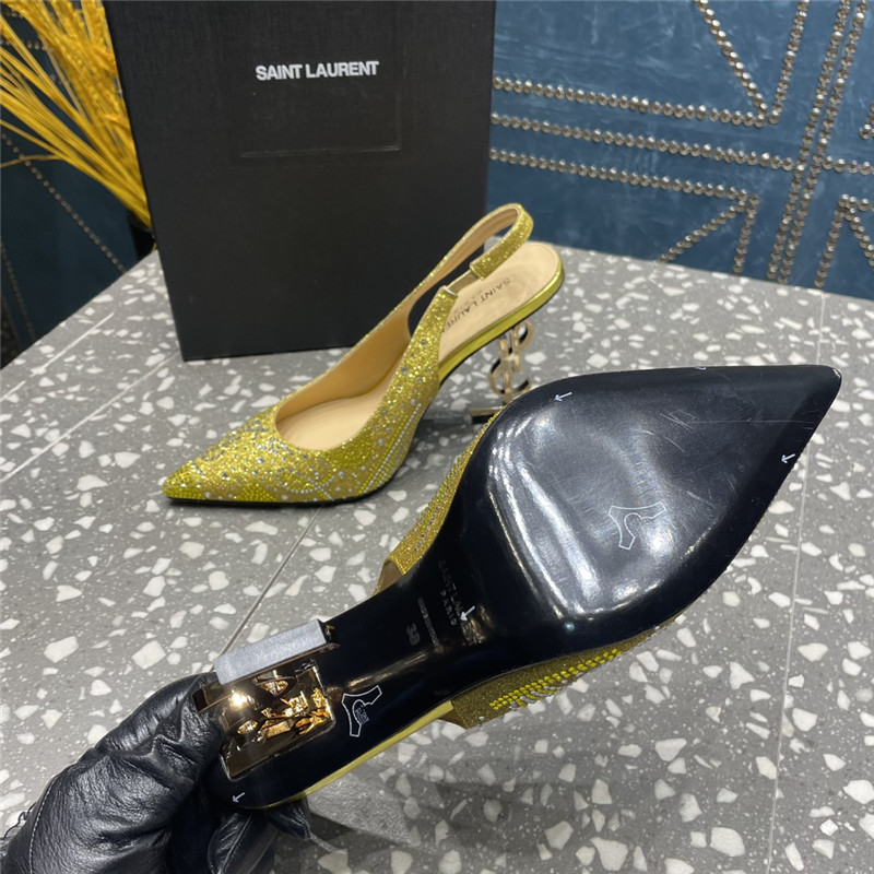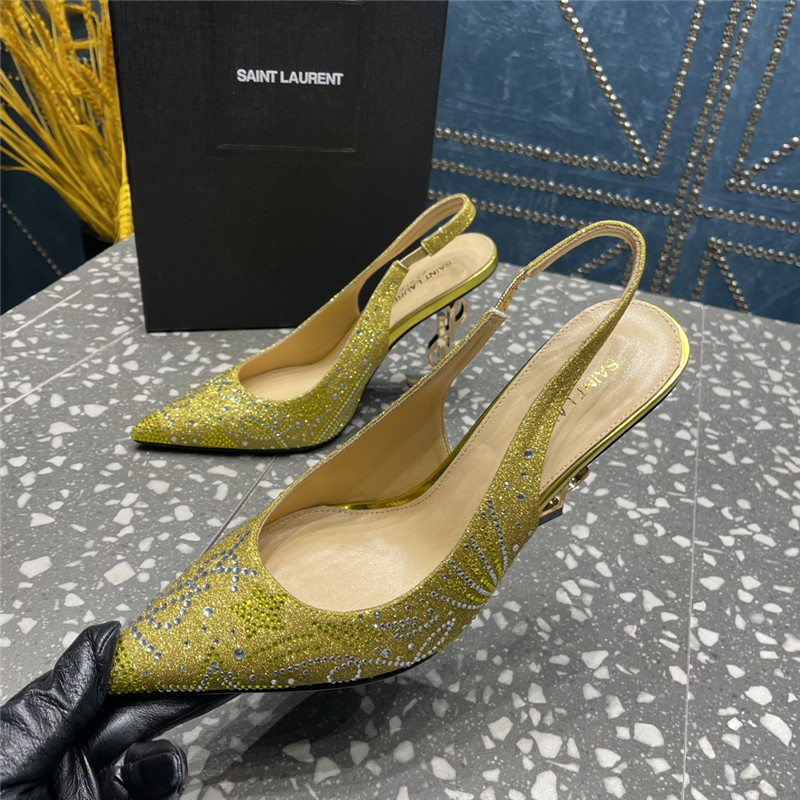 . YSL rhinestone high heel classic logo letter high heel sandals