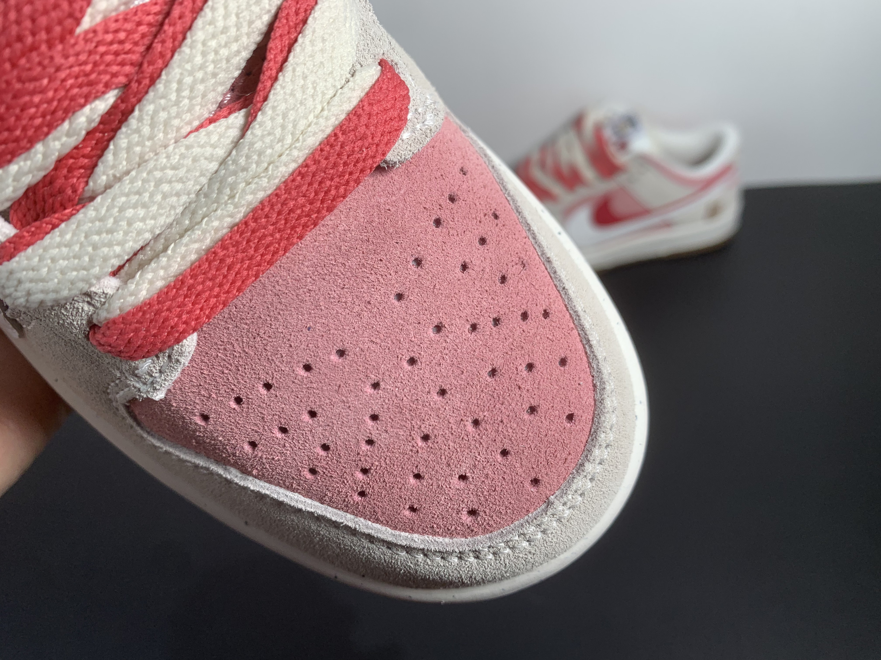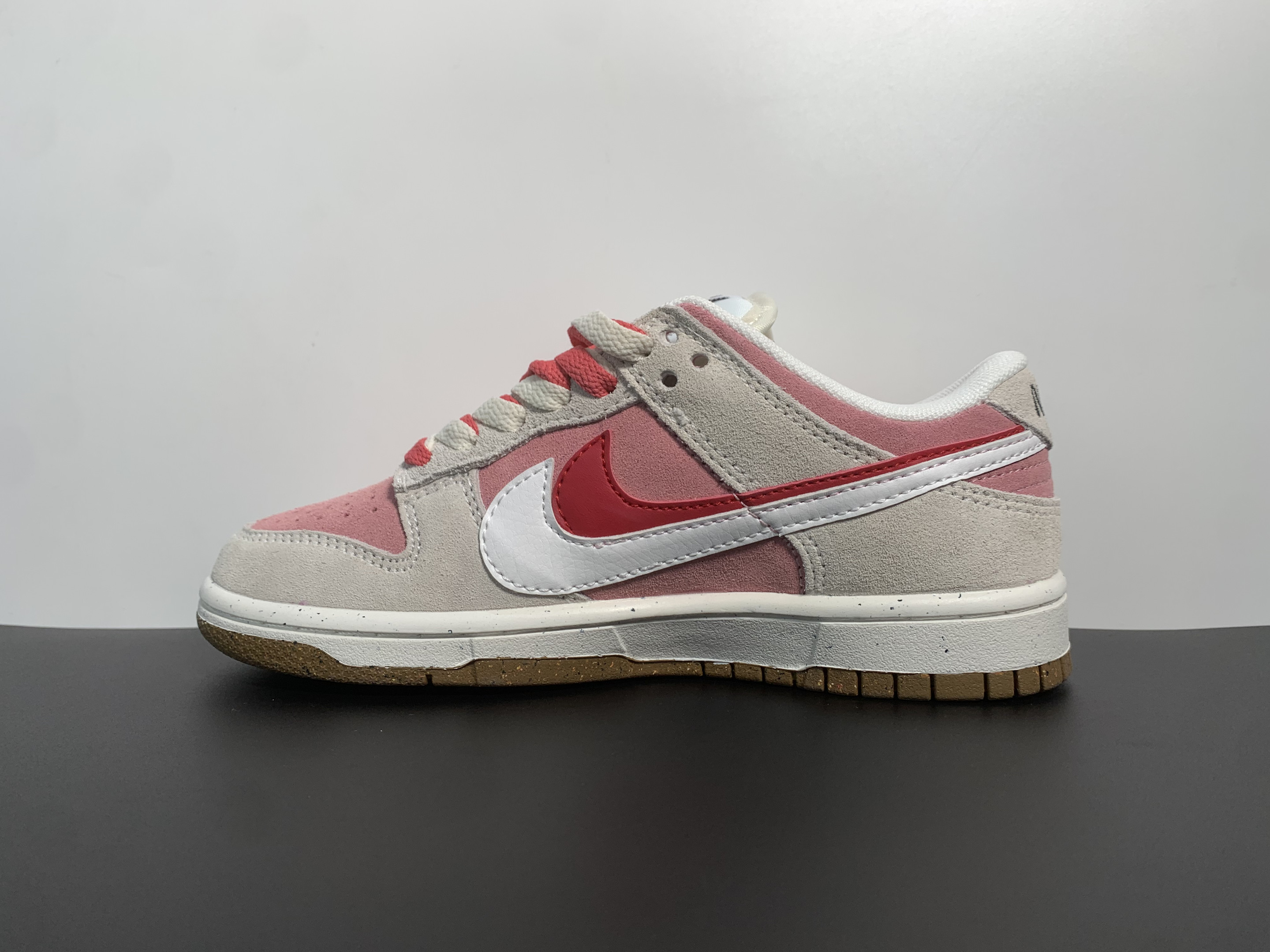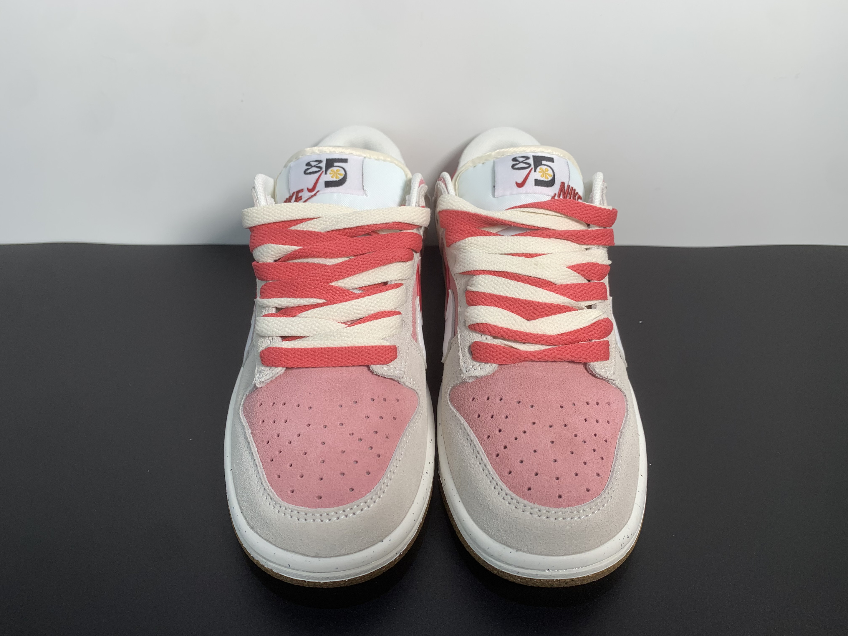 Premium White Leather Upper with pink suede for a soft, stylish look 🍪