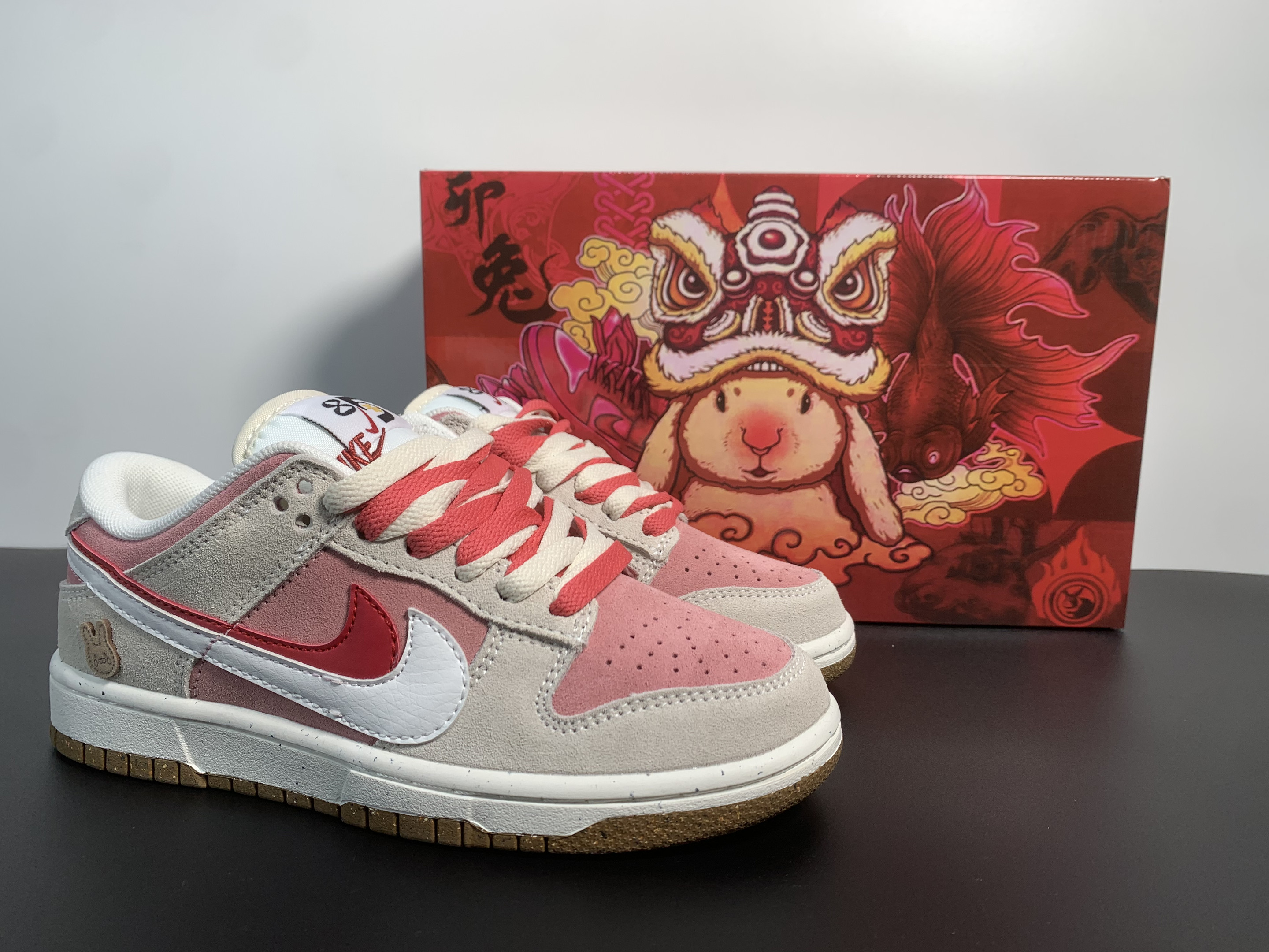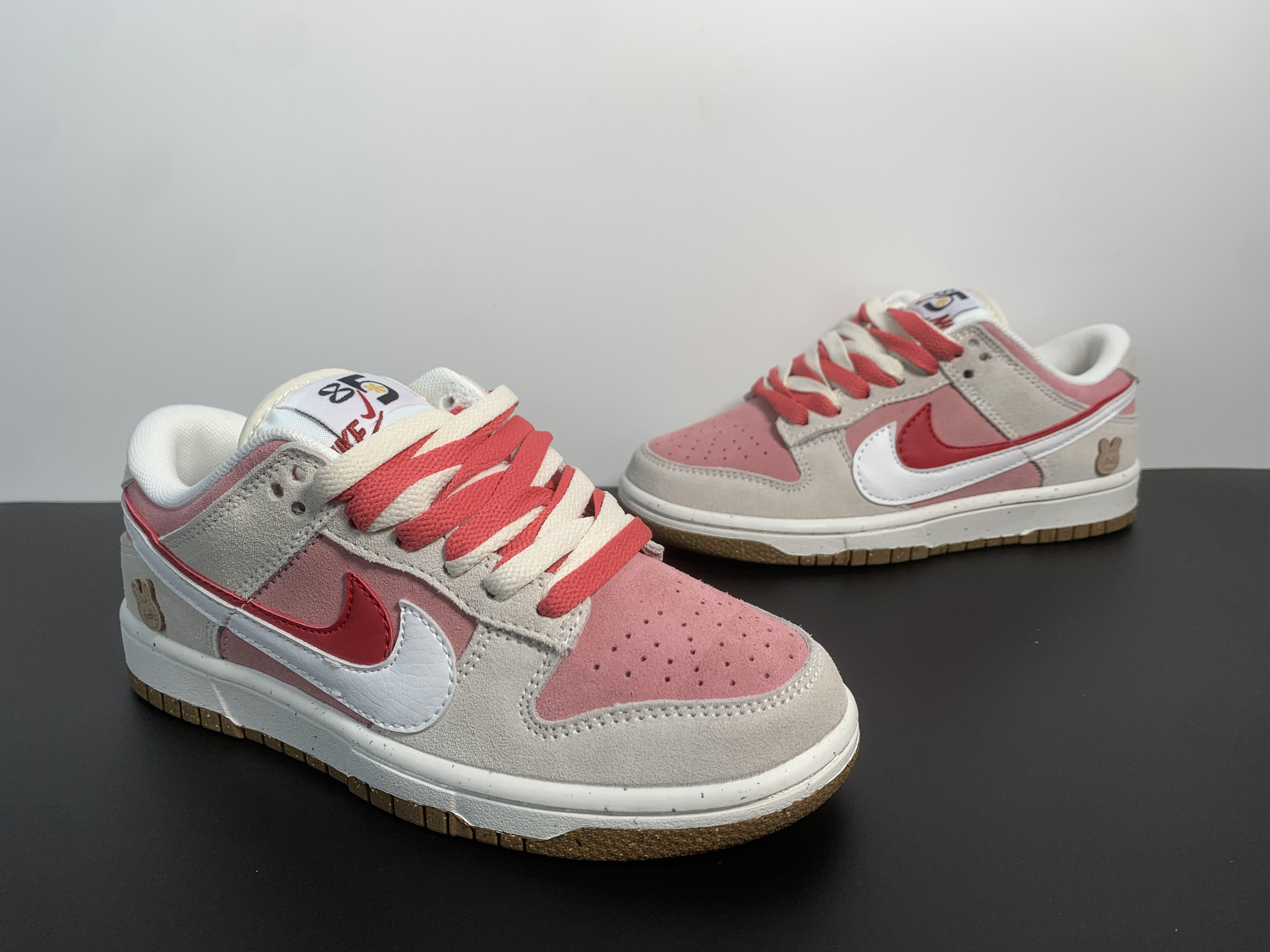 🔥 Nike Dunk Low SE 85 "Double Swoosh White Pink Rabbit Cookie" 🔥 The Nike Dunk Low SE 85 adds a playful twist with its "White Pink Rabbit Cookie" design! This special edition features double Swoosh branding, premium white leather with soft pink accents, and a unique cookie-inspired detail, making it a must-have for collectors and sneakerheads.
