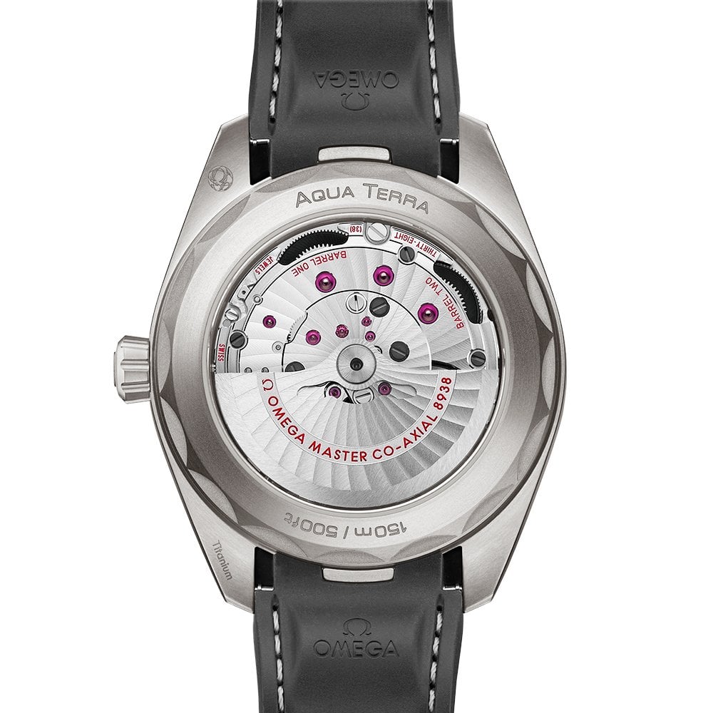 OMEGA Seamaster Aqua Terra GMT Worldtimer 43mm Titanium Black Dial Strap Watch 220.92.43.22.99.001. Titanium 43mm case and black ceramic bezel all on a black structured rubber strap. This men's watch has a sun-brushed black dial with blackened & luminous applied hands and hour markers as well as a date display at the 6 o'clock position & GMT function set around the dial. Water resistant up to 150m and sapphire crystal glass. 60 hour power reserve. OMEGA Calibre 8938 METAS approved automatic movement.