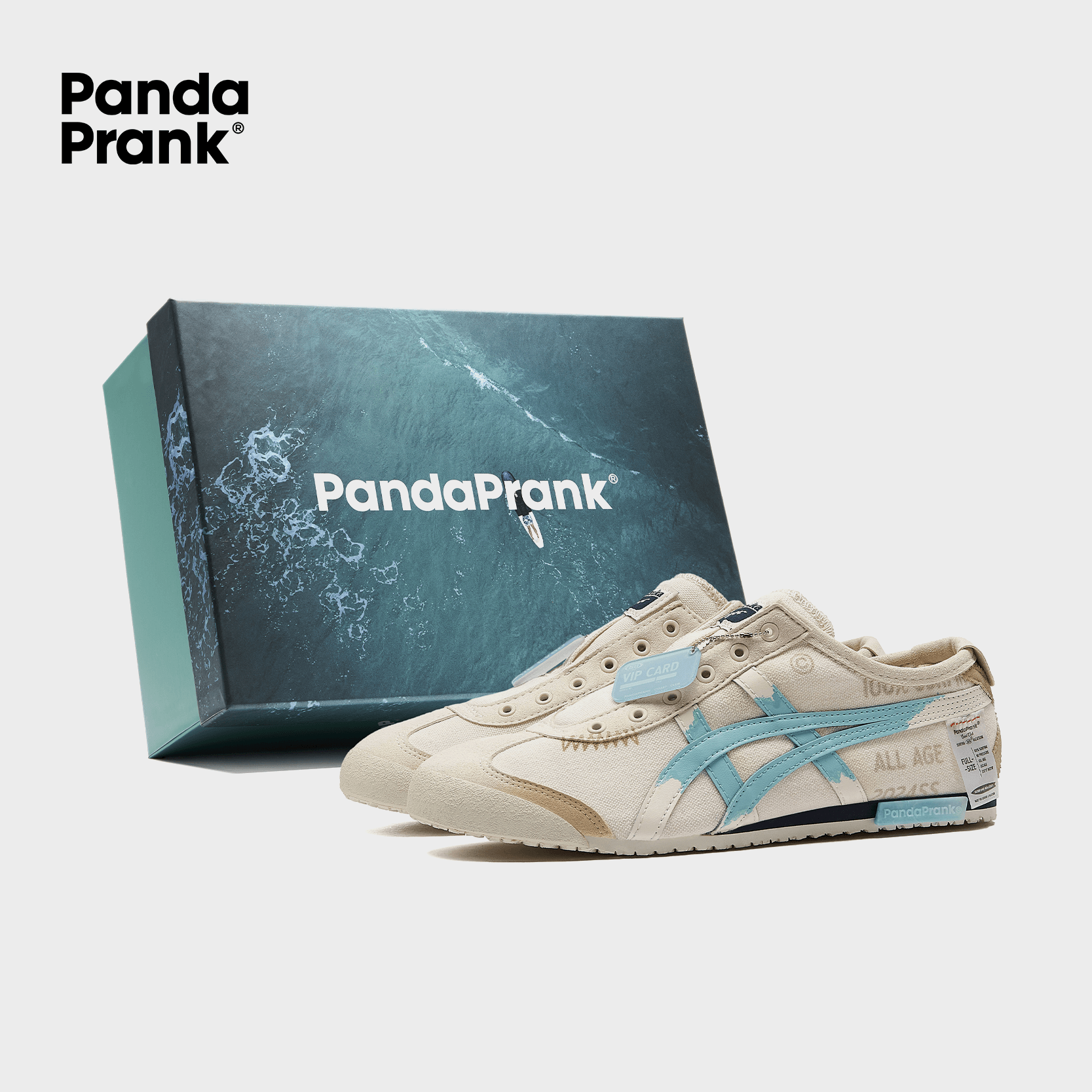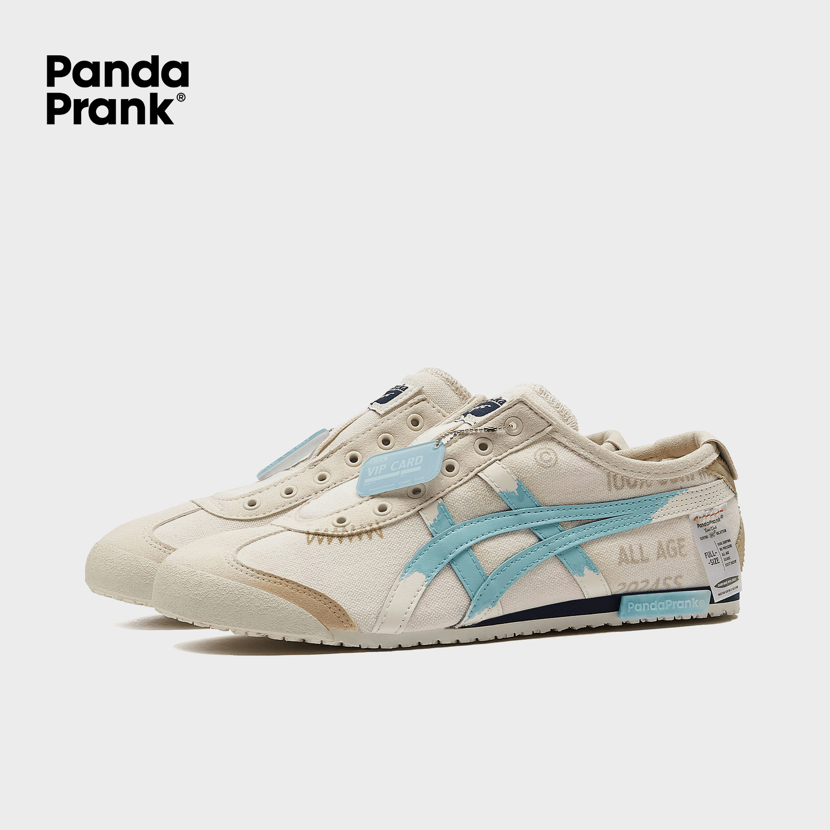 The design features a blue gradient technique on the Onitsuka Tiger's main body, with a predominately beige color that enhances its vintage appeal. Unique water-washed labels are incorporated to emphasize the wave-like texture and capture the essence of a summer vibe.