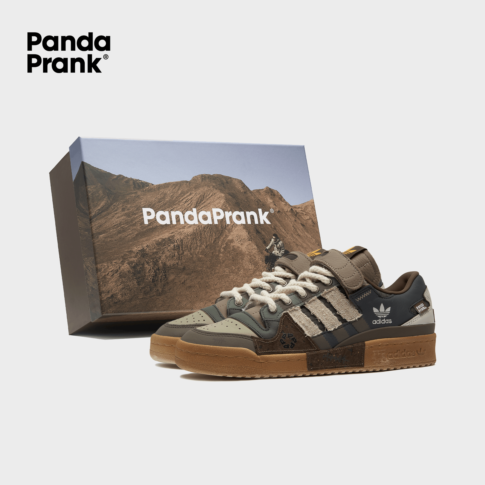 Using classic desert colors, the design incorporates a blend of cotton and linen fabric to create a distressed look. The dark brown aged midsole combined with dark cork material enhances the adventurous feel.
