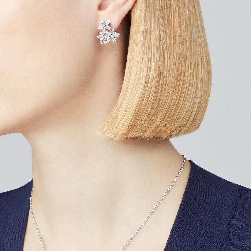 Clip back and detachable earrings, 18K platinum, can be removed or adjusted in the boutique
