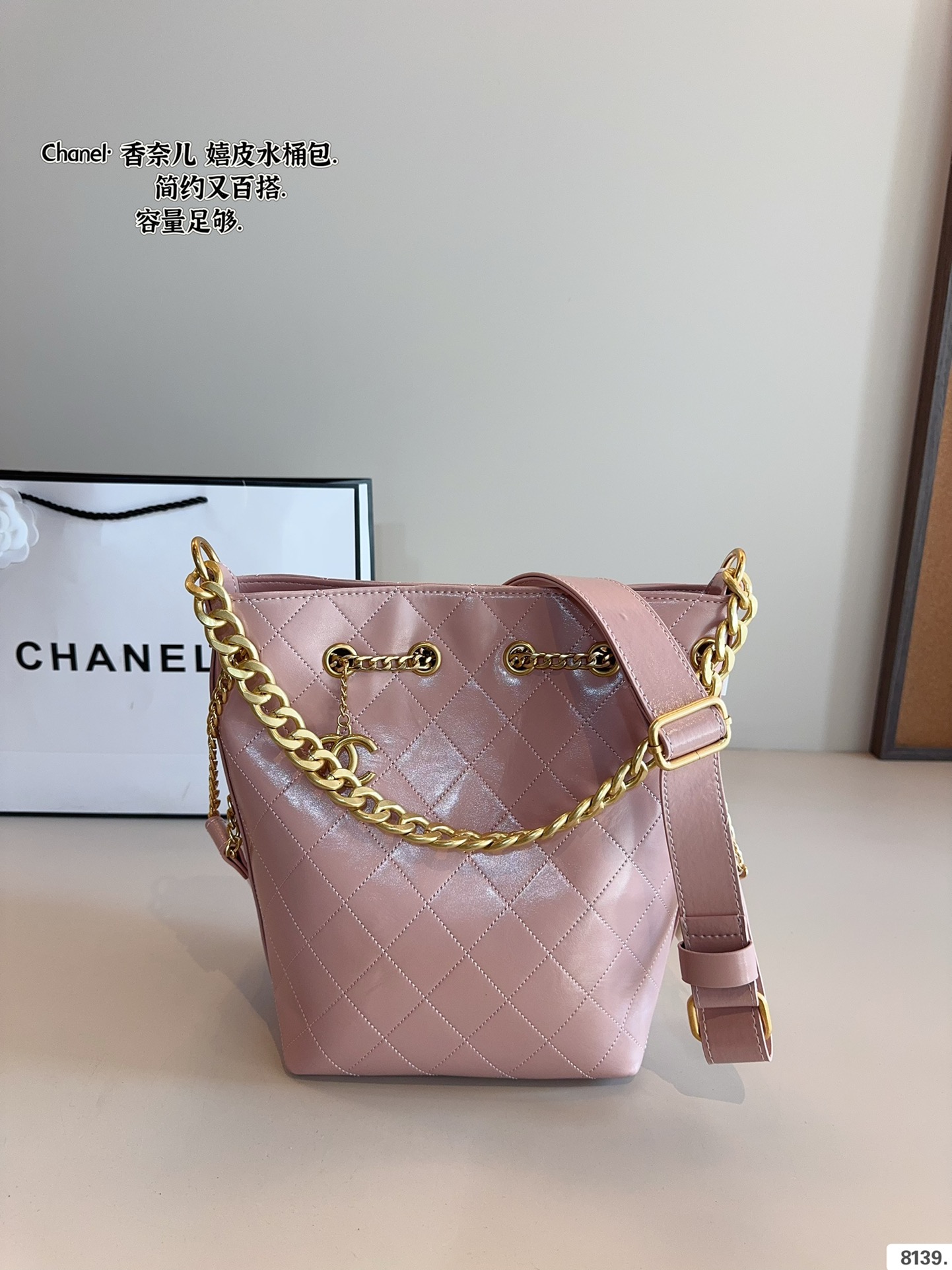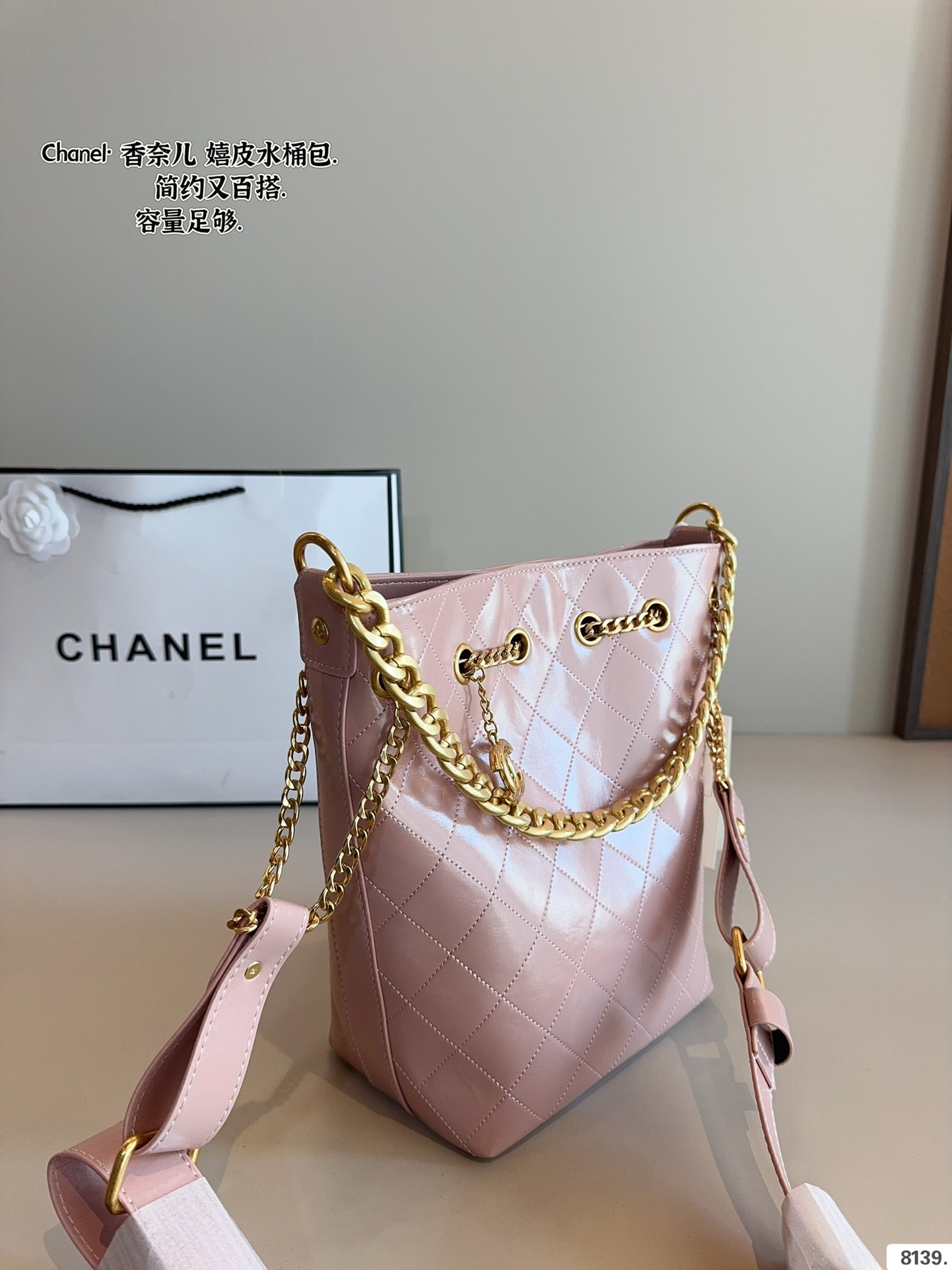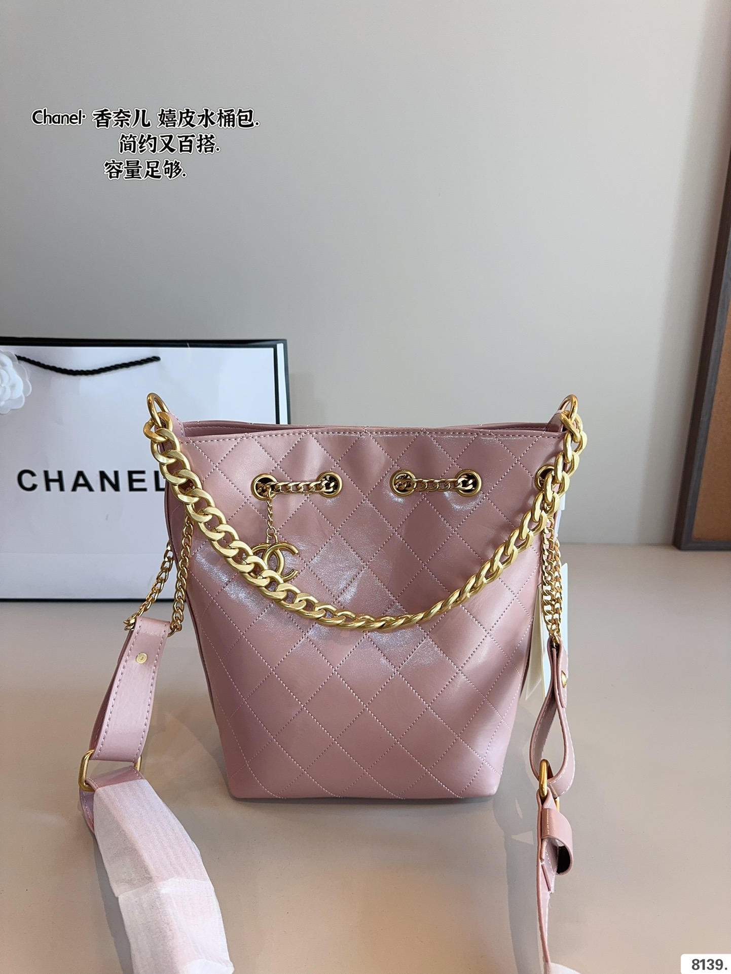The inspiration for the bucket bag dates back to the 1920s, when Chanel always insisted on combining elegance with practicality. This bucket bag takes the brand’s iconic quilted design and blends it with the modern woman’s pursuit of freedom and independence, creating a piece that is both fashionable and functional.