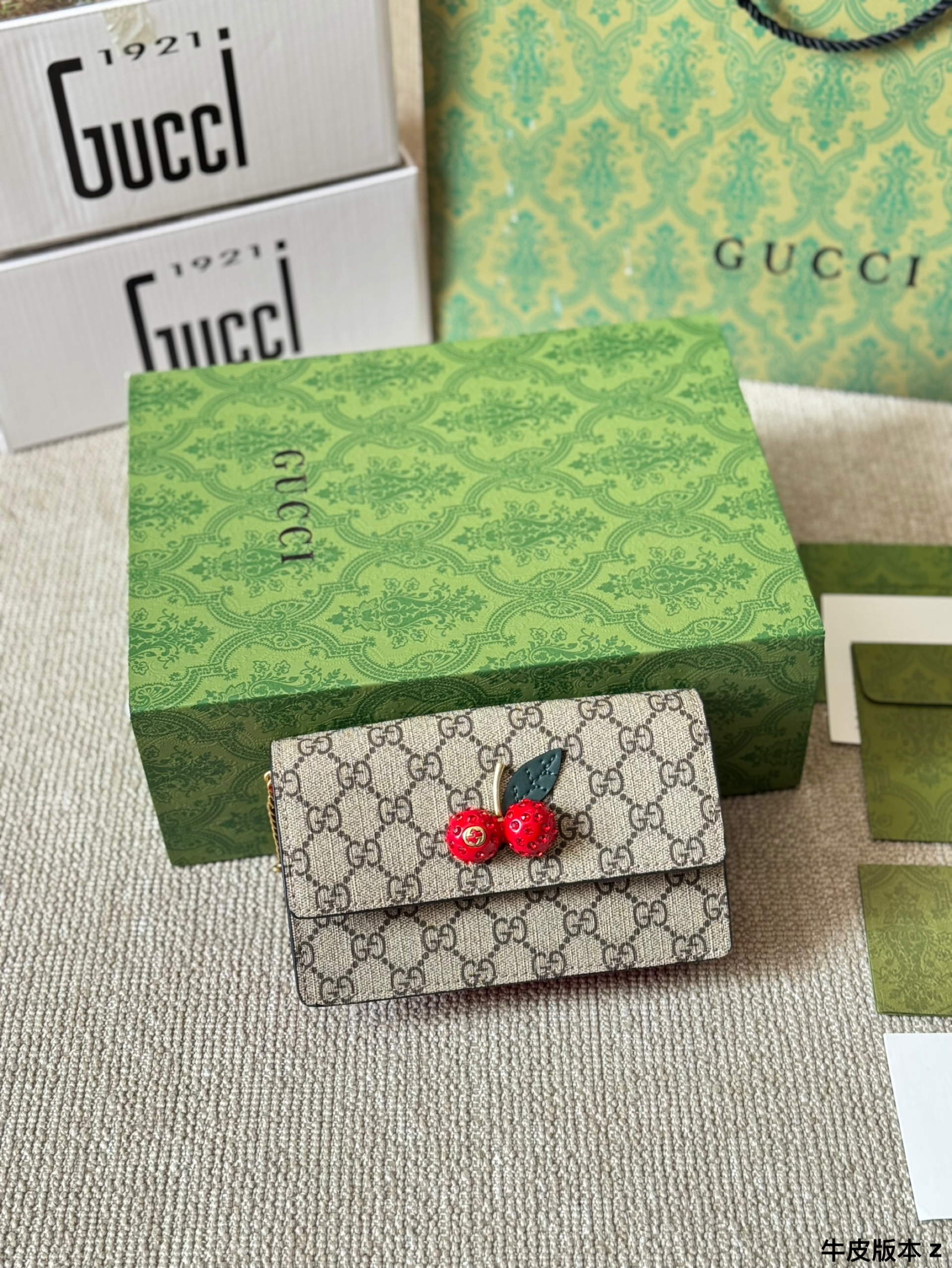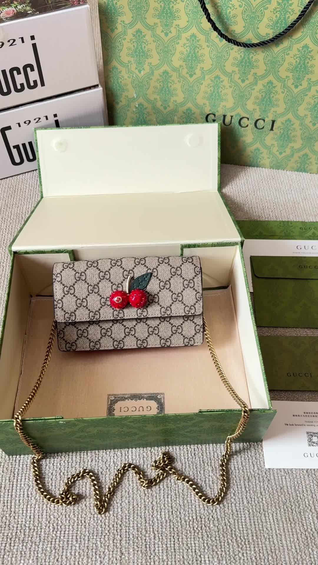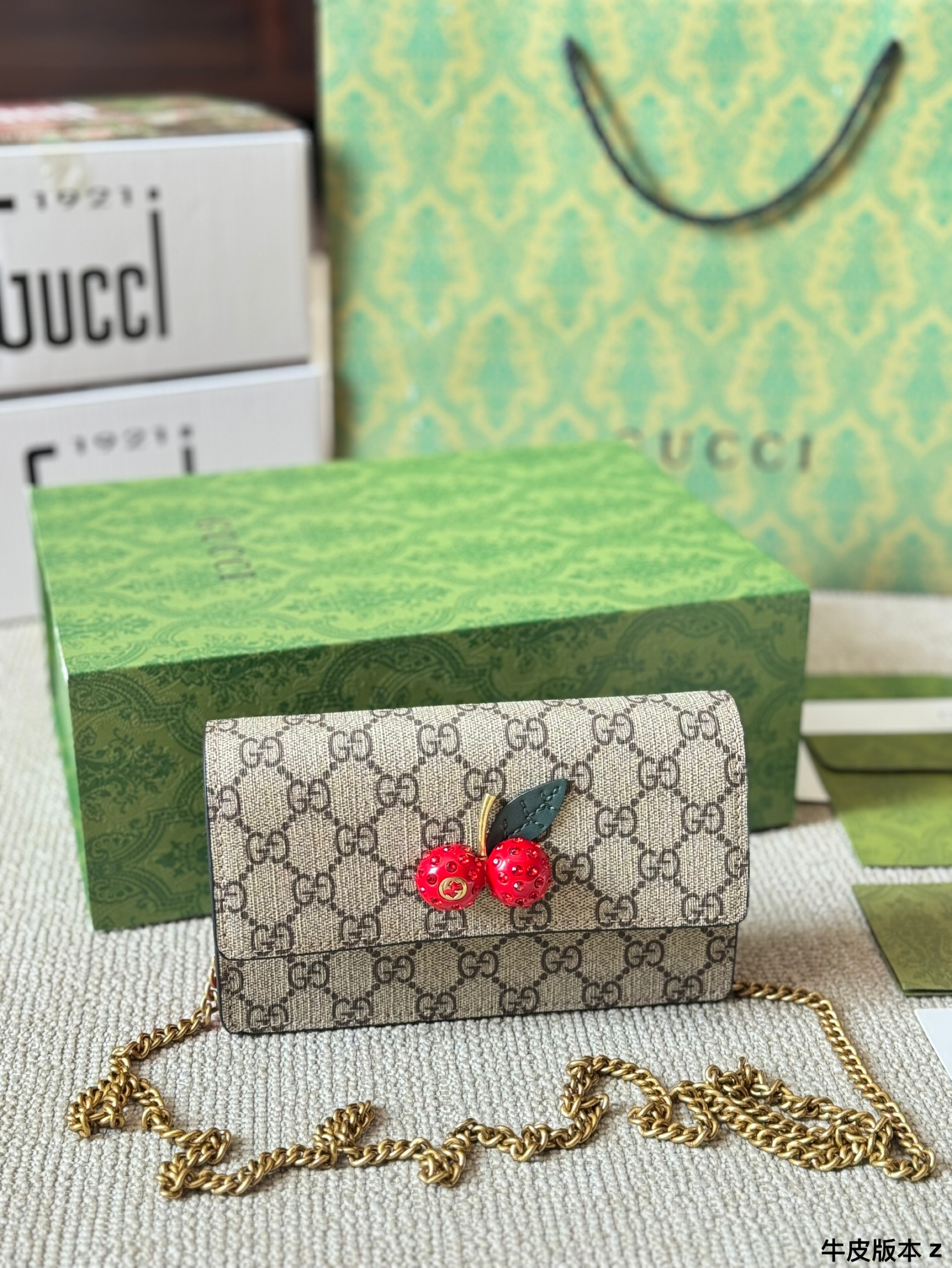 This Gucci cherry bag uses three-dimensional rhinestone hardware. The unique cherry pattern design adds playfulness and personality to the bag, perfectly showing the sweetness and unique charm of women. Whether it is daily travel or dinner parties, you will be the focus.