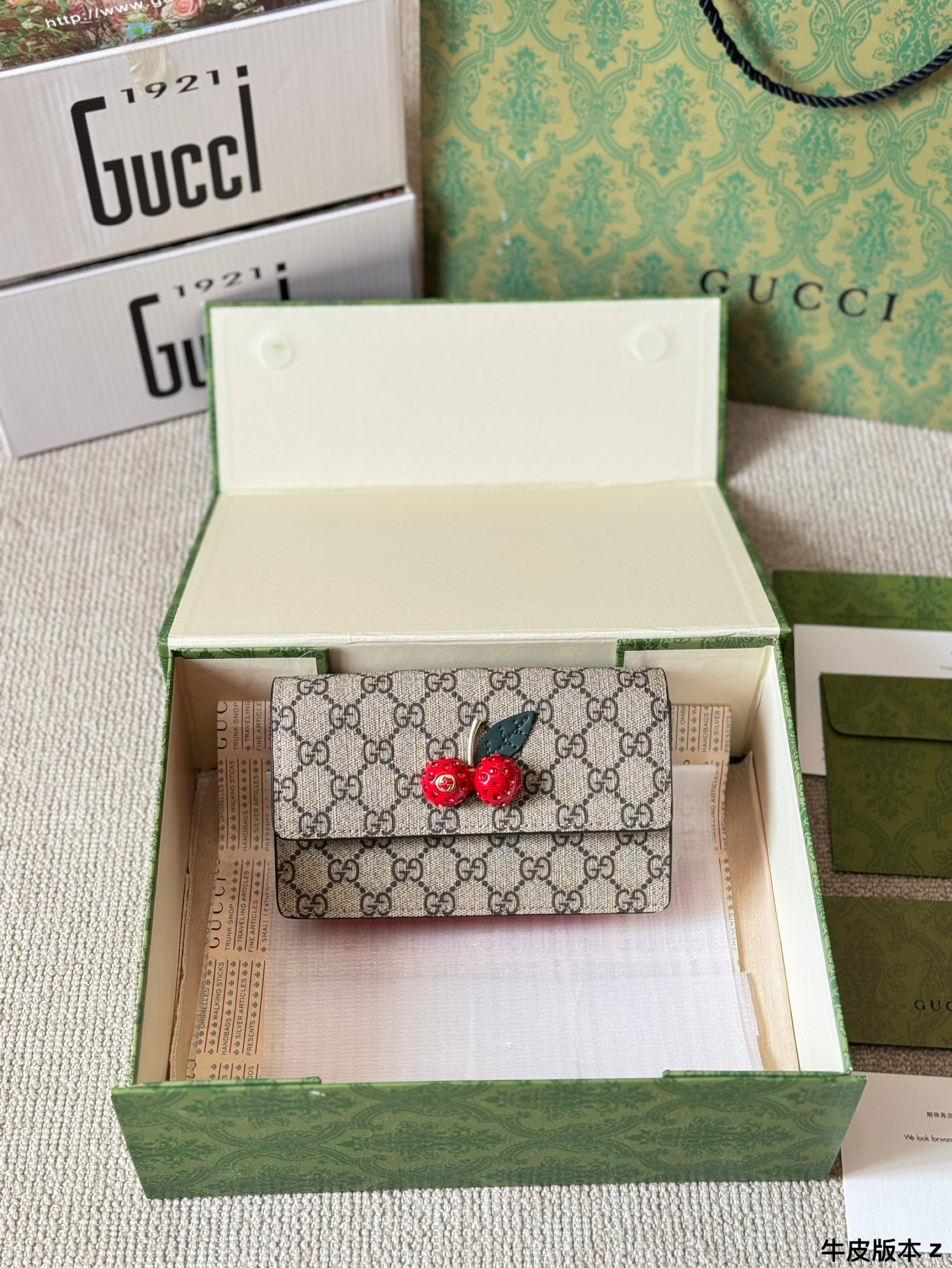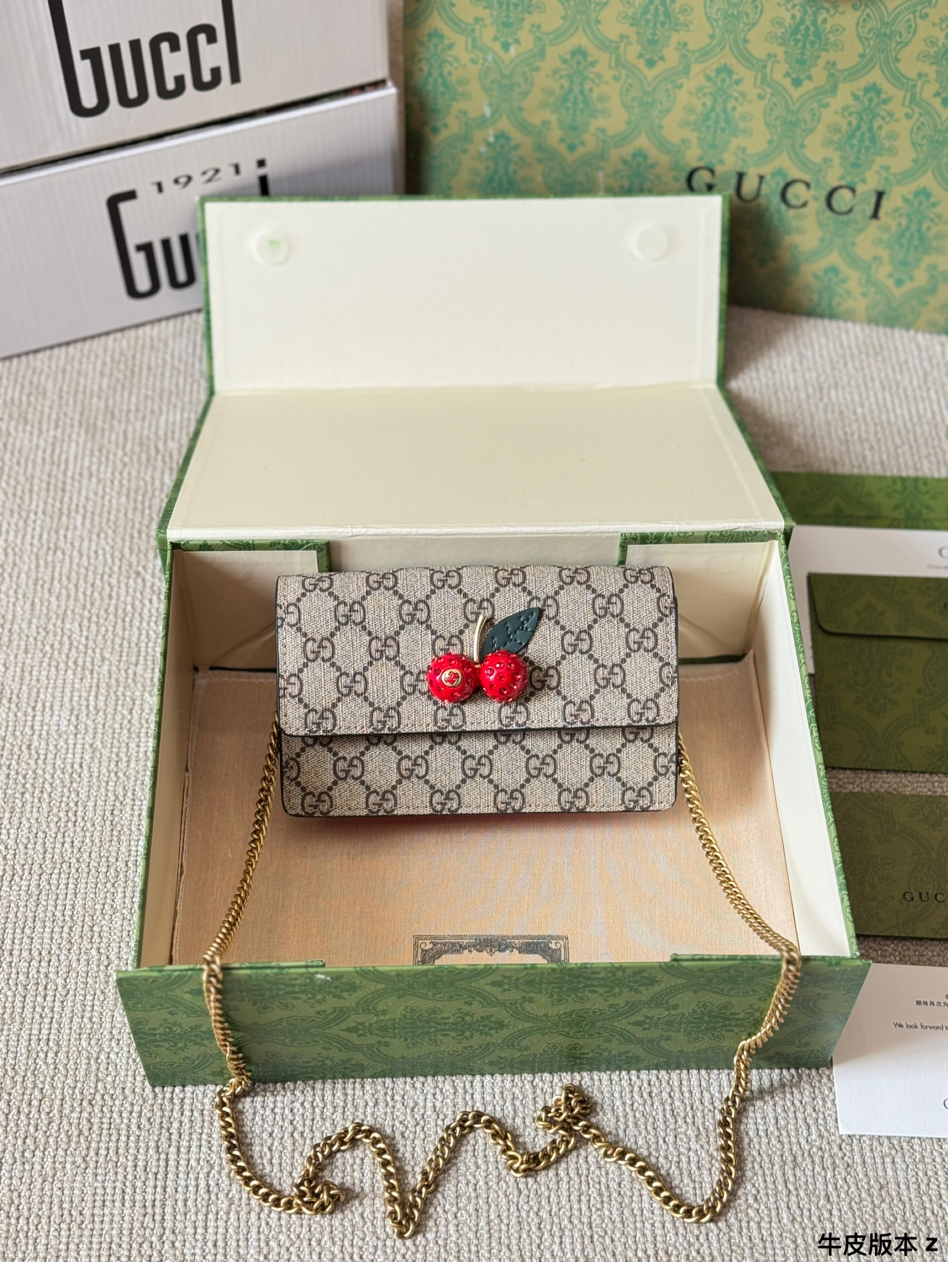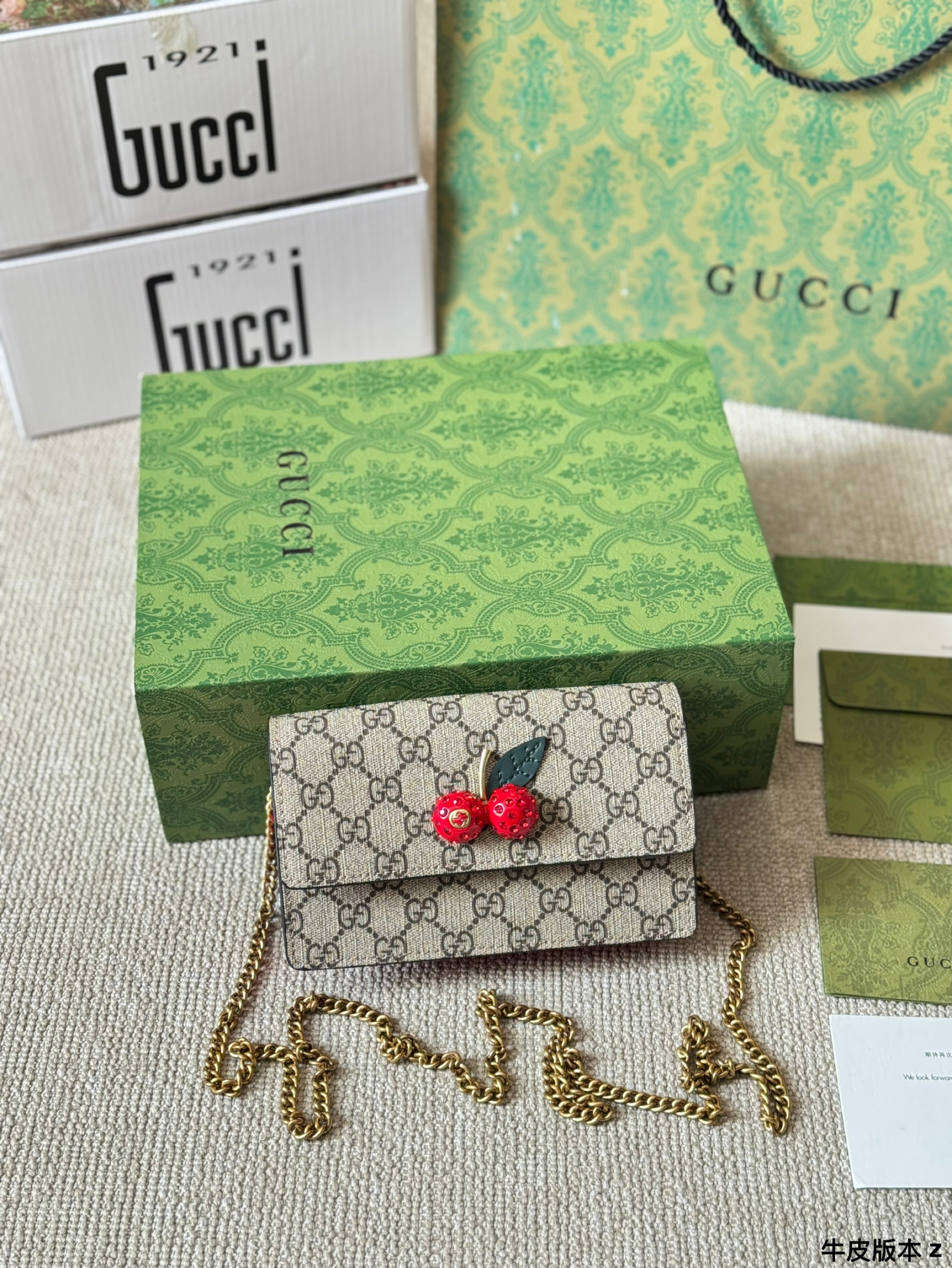 This Gucci cherry bag uses three-dimensional rhinestone hardware. The unique cherry pattern design adds playfulness and personality to the bag, perfectly showing the sweetness and unique charm of women. Whether it is daily travel or dinner parties, you will be the focus.
