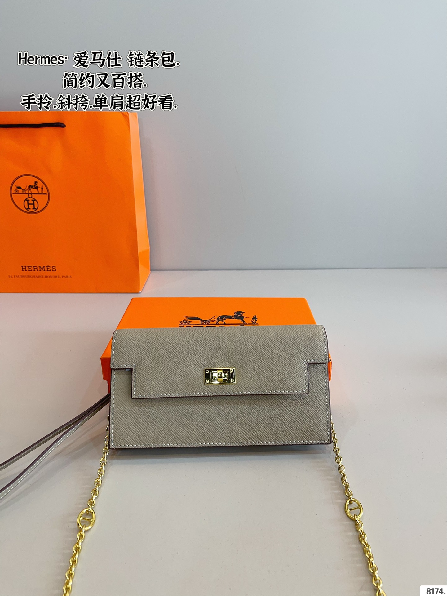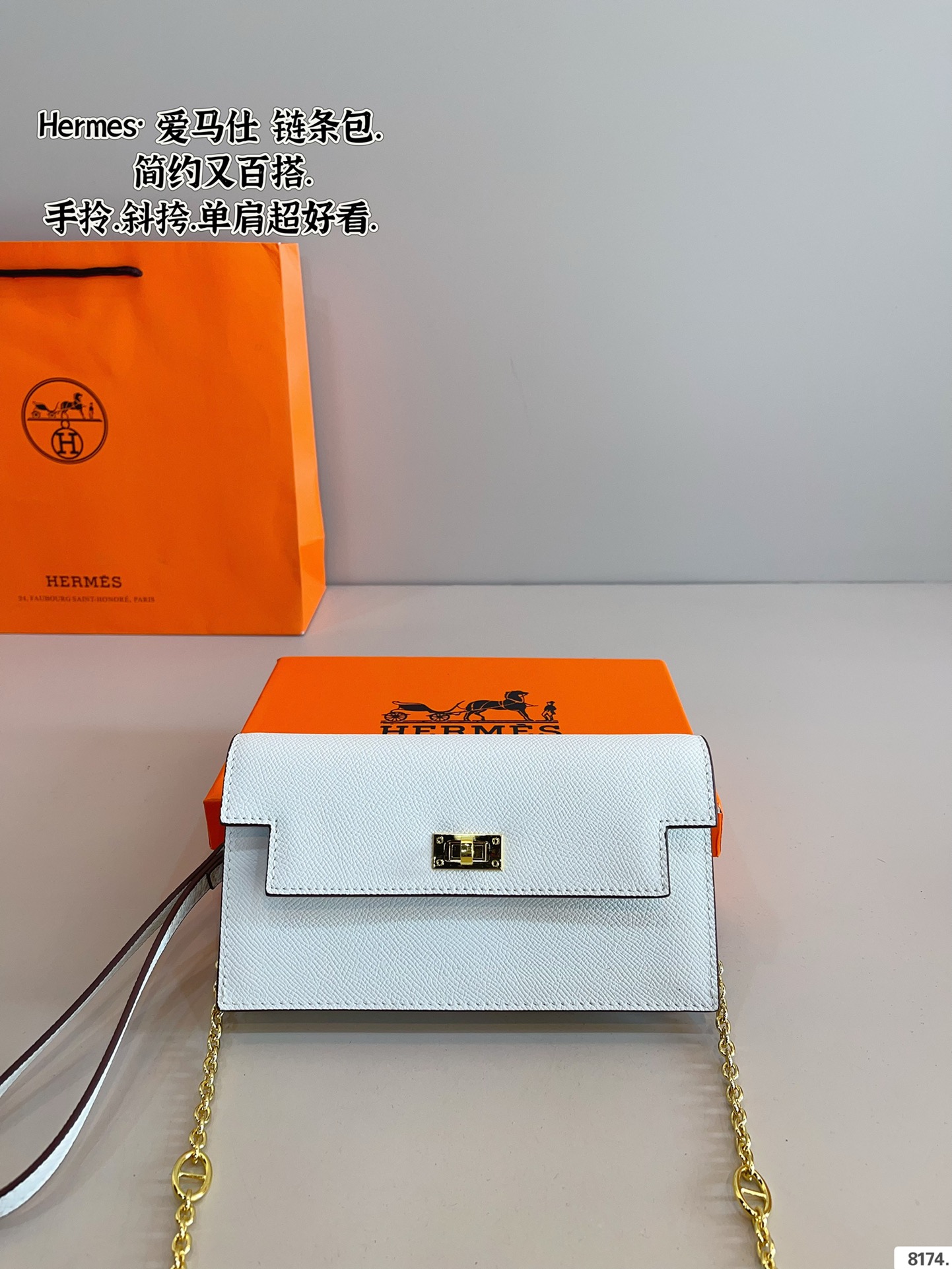 - Chic Accessories – Adorned with a delicate silk scarf and the classic Hermès Pegasus charm, adding a playful yet elegant flair.