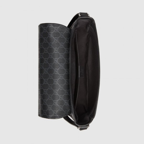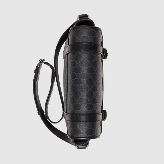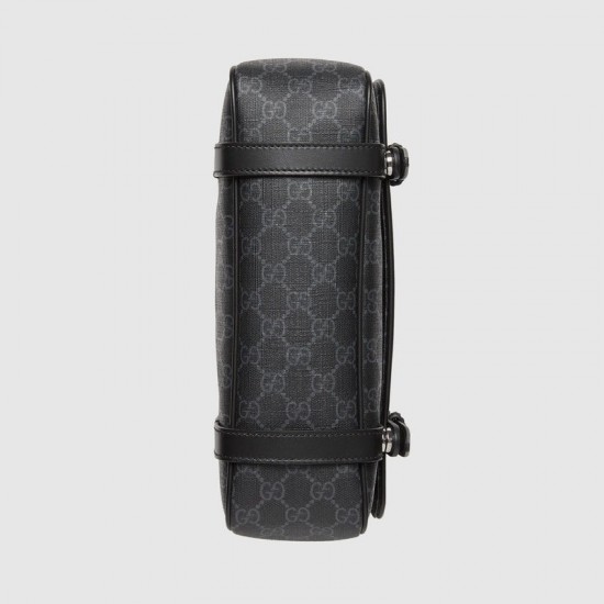 Black GG Supreme canvas, a material with low environmental impact Black leather trimInterior open pocketAdjustable strap with 19.3″ drop11″W x 9.4″H x 3.3″DWeight: .7kgCotton linen liningMade in ItalyThe model is 6’1″ tall.