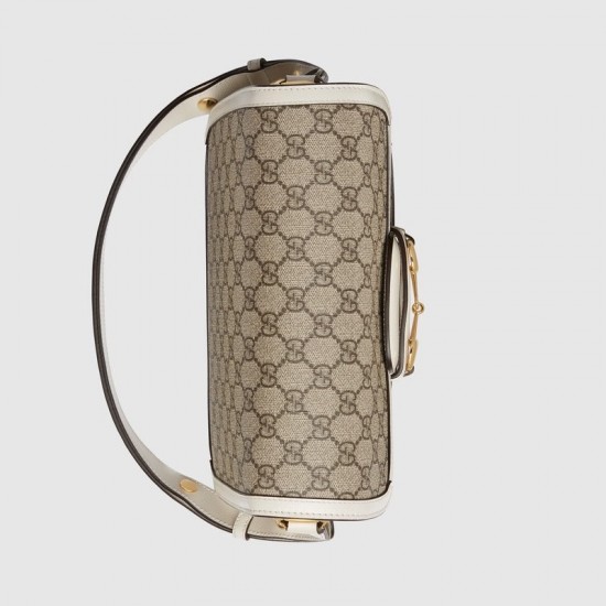 Beige/ebony GG Supreme canvas, a material with low environmental impactWhite leather detailsGold-toned hardwareMicrofiber lining with a suede-like finishHorsebit detail at the frontHalf Horsebit detail at each sideEach bag will ship with a small pouch containing two additional button covers that can be used to cover the exposed studs when the shoulder strap is lengthenedThree gussets with one zipper and one open pocketShoulder strap with snap buttons can be adjusted from a 9.8″ to 17.7″ dropAdjustable strap with 25cm – 45cm dropFlap closureWeight: .84kg approximatelySmall size: 9.8″W x 7″H x 3.1″DMade in ItalyThe model is 5’10” tall
