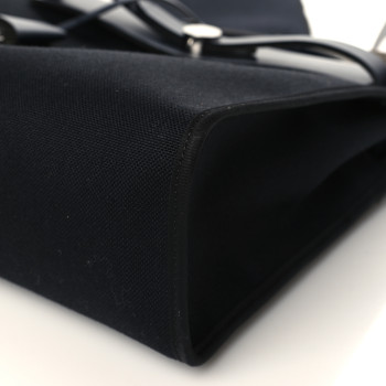 This is an authentic HERMES Military Toile Vache Hunter Herbag Zip PM 31 in Black and Bleu Indigo. This stylish tote is crafted of sturdy toile canvas in black.�The shoulder bag features a rear exterior zip pocket, a black leather�top crest with a leather top handle, a shoulder strap, and strap closure with polished gold hardware including a padlock. This opens to a toile canvas interior with a matching pouch.