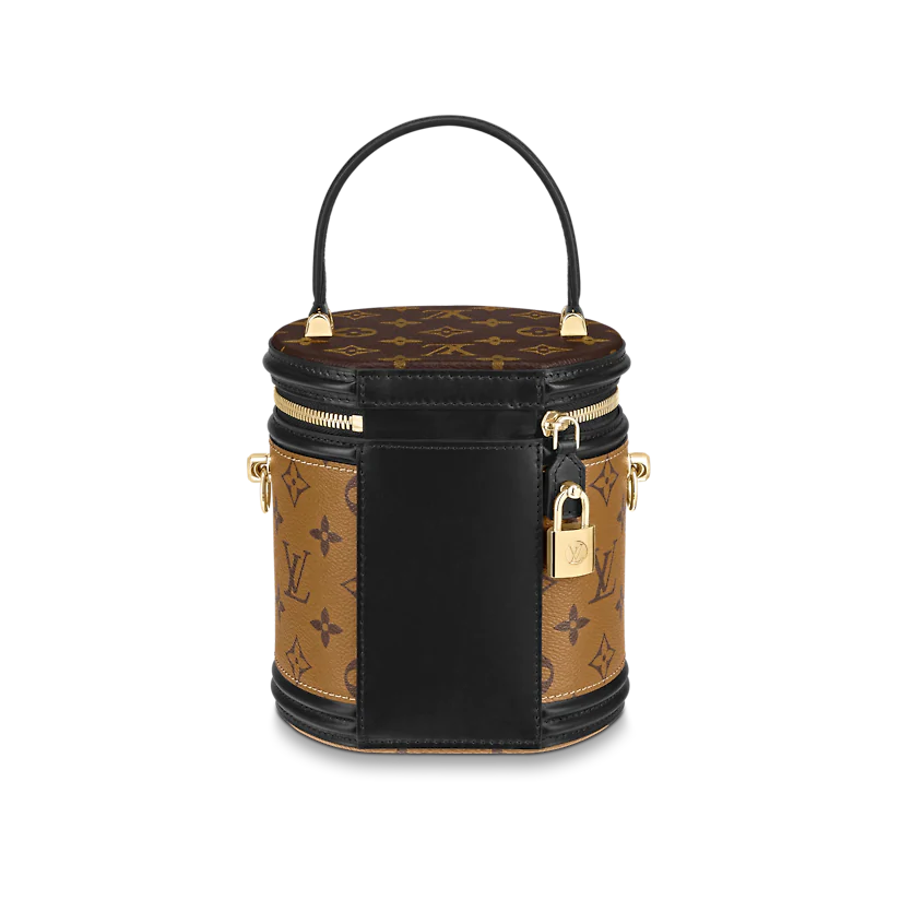 Featuring the historical shape of the LV Cannes beauty case, designer Nicolas Ghesquière revives a long-standing classic with the Cannes handbag. Petite in size and presented in a mix of Monogram and Monogram reverse coated canvas, the elegant piece reanimates a traditional silhouette steeped in Louis Vuitton heritage. A removable leather strap and top handle provide a range of carrying options.