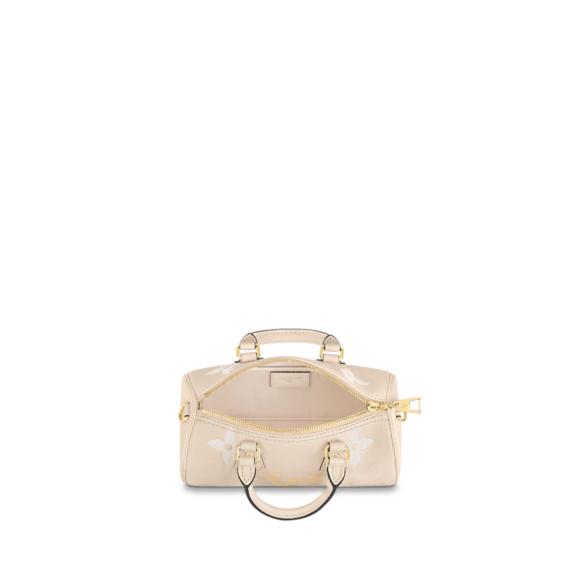 This adorable version of the historic Papillon shape, the Papillon BB carryall bag, is made from pastel Monogram Empreinte leather with a gradient Monogram print. Its iconic lines get a sporty update thanks to its detachable Louis Vuitton jacquard strap. The removable round coin purse brings a playful touch.