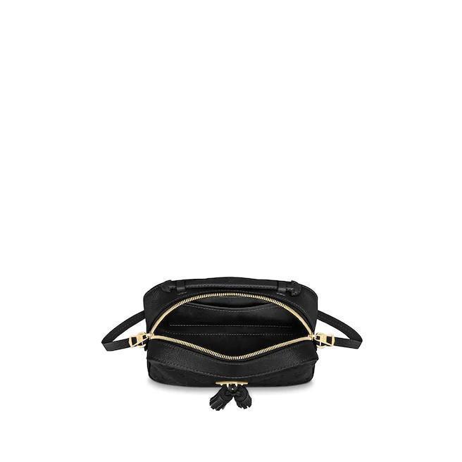 Fashioned from embossed Monogram Empreinte leather, this edition of the Saintonge handbag is detailed with playful tassels and shiny golden hardware. Sized to fit a woman’s daily essentials, this compact model transitions easily from day to evening, either carried by the supple top handle or suspended from the adjustable shoulder strap.