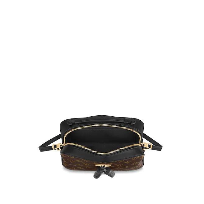 Monogram canvas and smooth leather combine in the Saintonge, a compact bag with a youthful vibe. The colored leather lends contrast and volume to the design, while the tassels add a playful touch. Sized to fit daily essentials, this fashionable model can be carried by the supple top handle or worn suspended from the long shoulder strap.