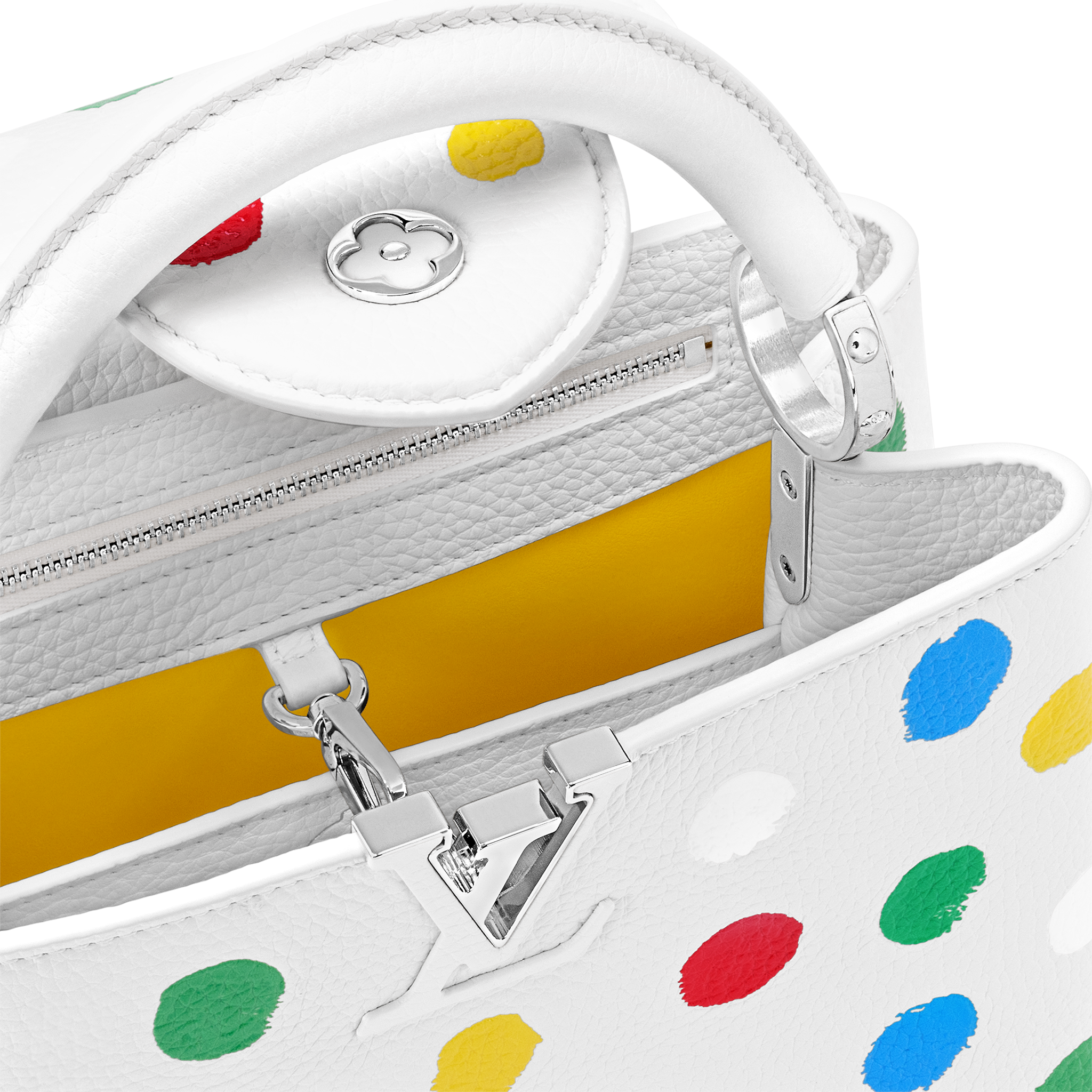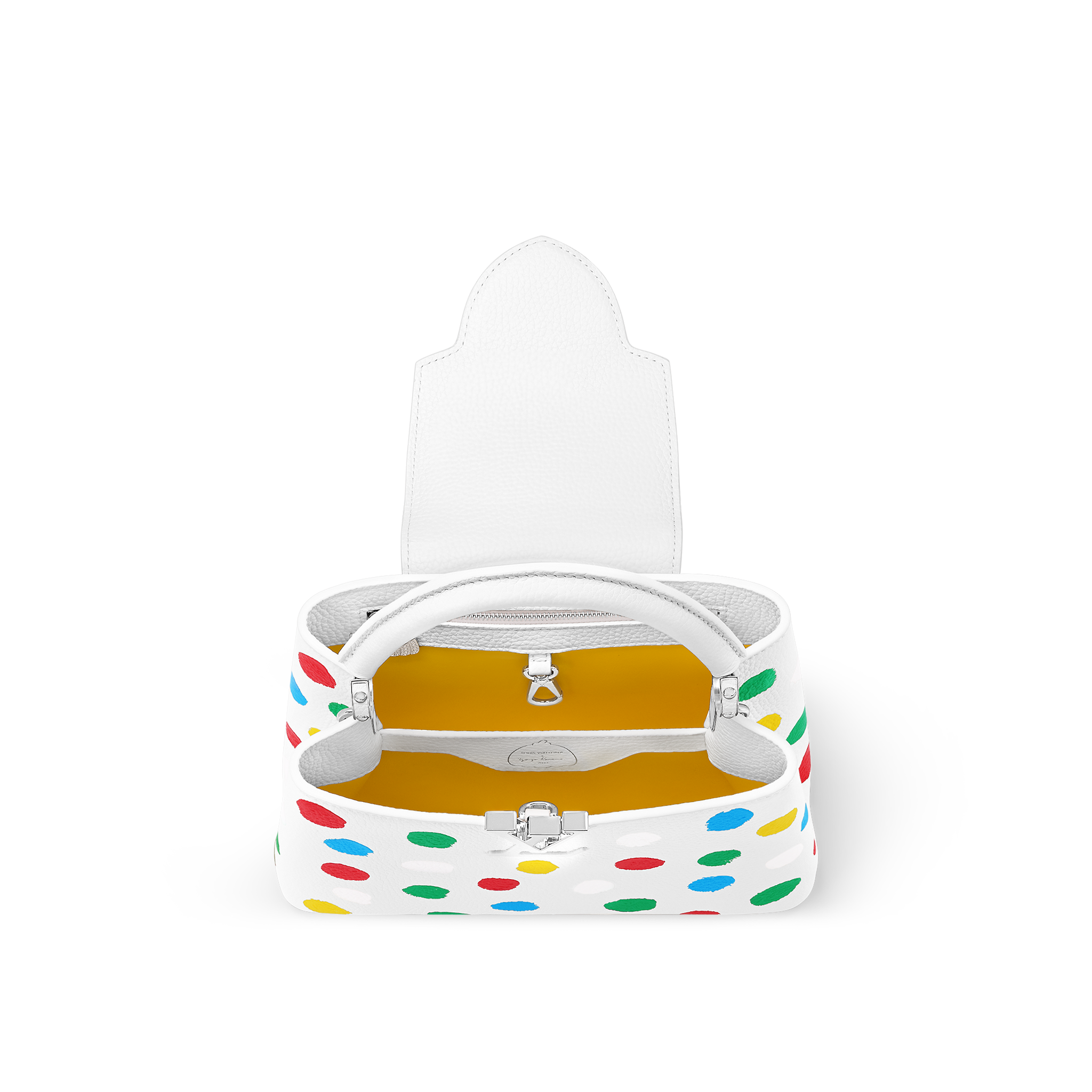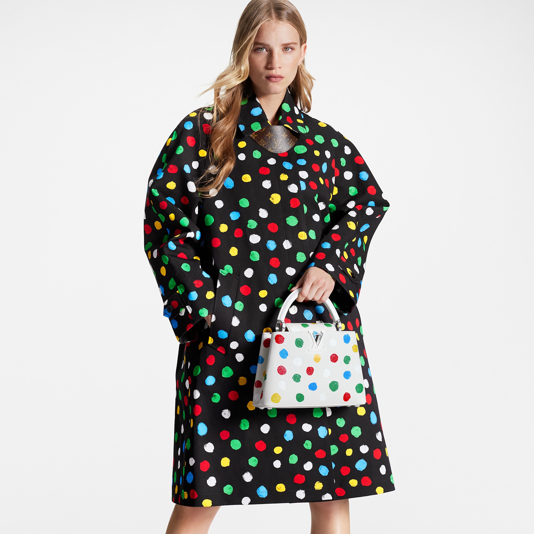For the exclusive new Louis Vuitton x Yayoi Kusama collection, the LVxYK Capucines BB comes with a high-spirited print that echoes the revered Japanese artist’s obsession with dots. A recurrent motif in her work, they appear here in a whole spectrum of colors, screen-printed with a subtle relief effect on fine, supple Taurillon leather. A collector’s bag and a celebration of timeless art and craftsmanship.