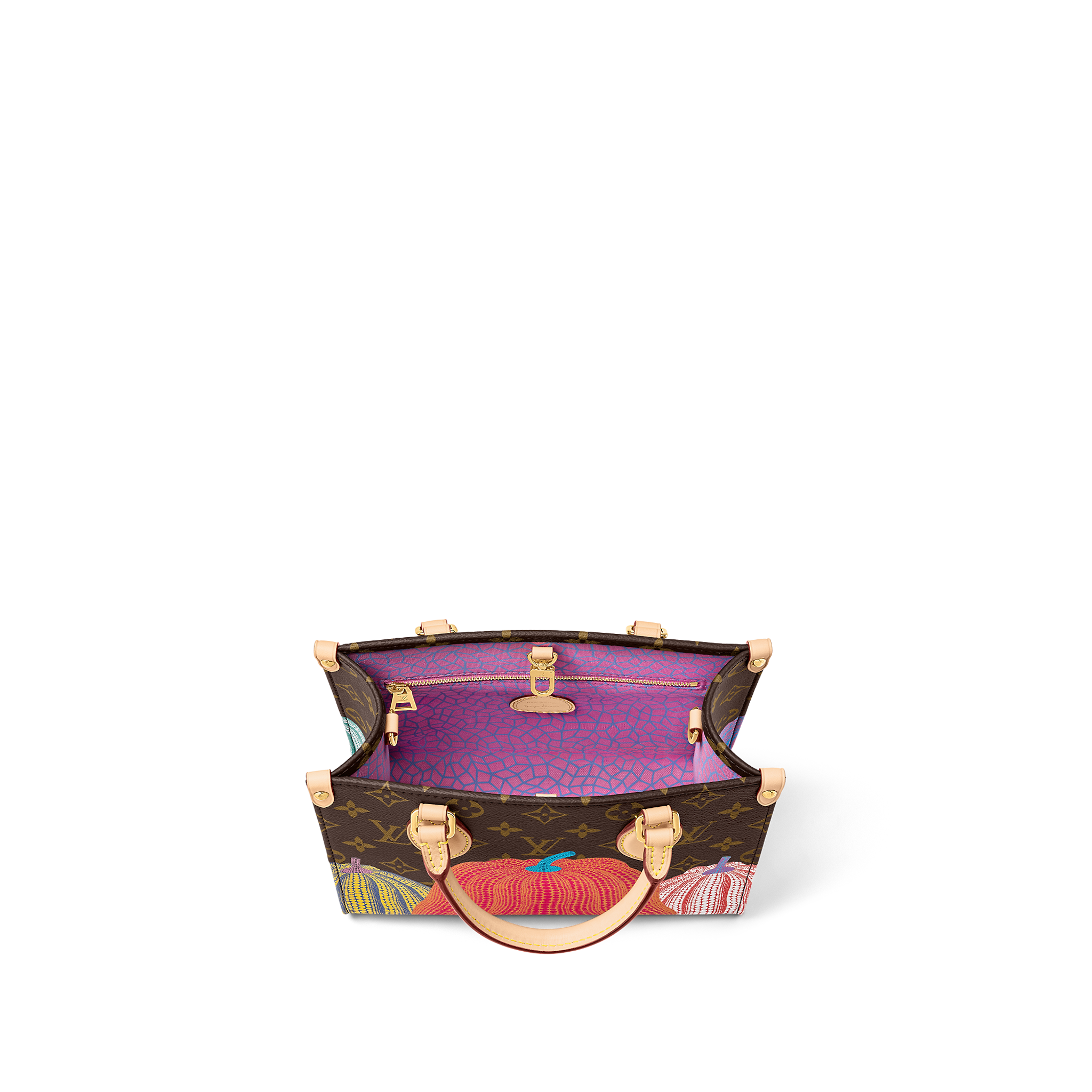 For the Louis Vuitton x Yayoi Kusama collection, the LVxYK OnTheGo PM captures the spirit of the Japanese artist’s work with a unique and creative print. Kusama has made pumpkins a visual signature, an emblem of her irrepressible energy and enthusiasm. For this user-friendly bag, Monogram canvas is embellished with a series of pumpkins in warm colors. And it comes with a separate pumpkin-print coin purse on the strap.