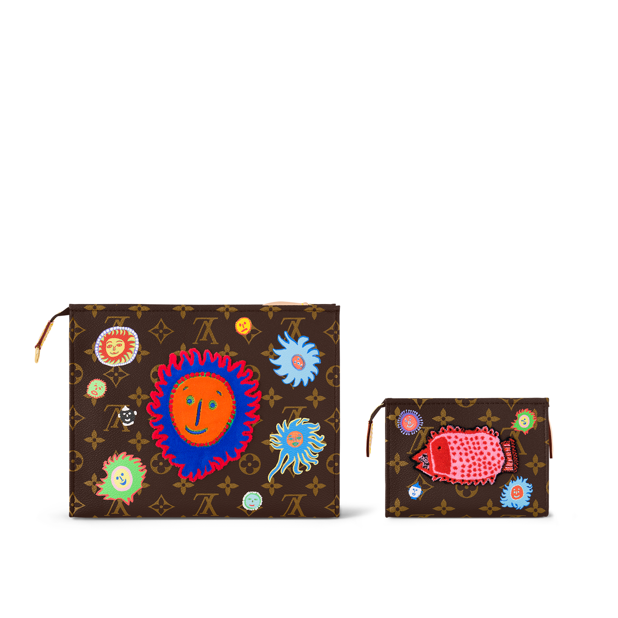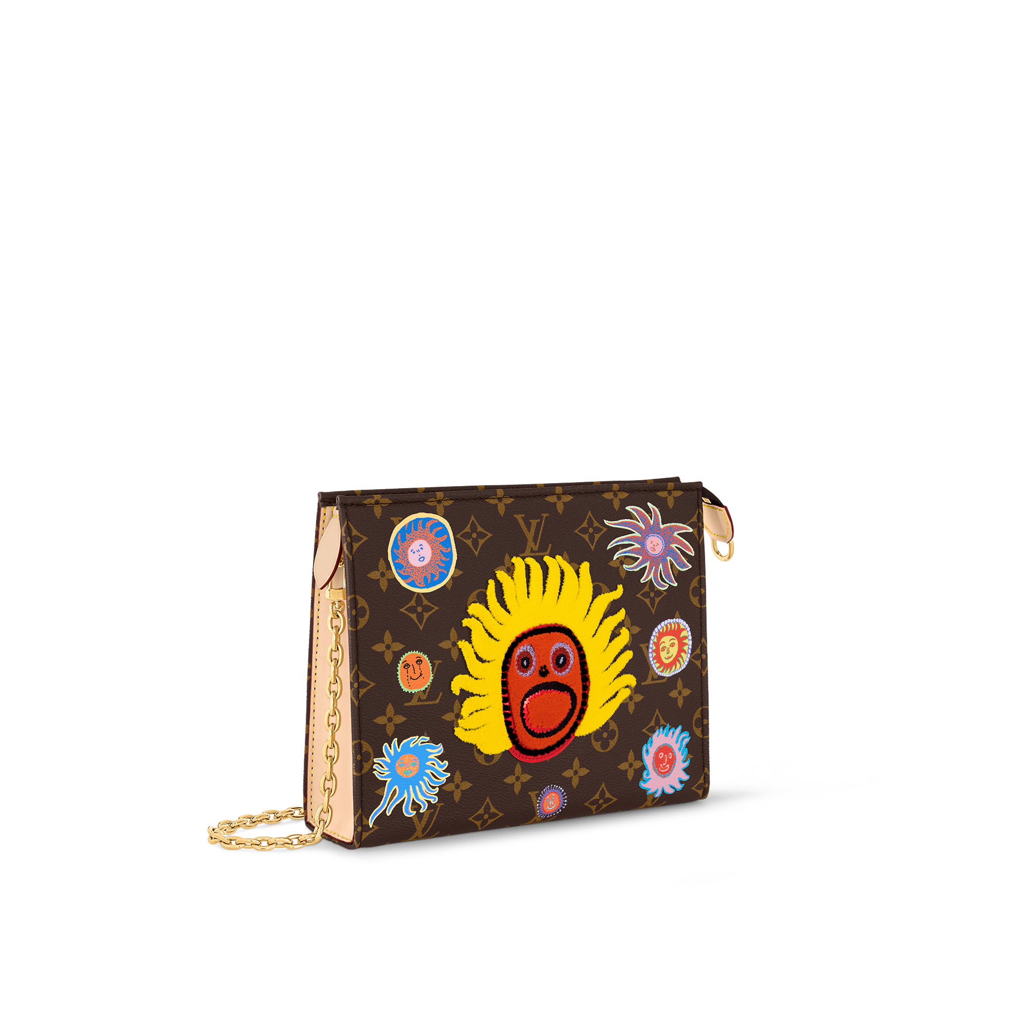 A handy travel companion becomes a veritable work of art: the LVxYK Toiletry Pouch On Chain joins the “Faces” theme of the exclusive new Louis Vuitton x Yayoi Kusama collection. Monogram canvas is printed and embroidered with joyful images from “My Eternal Soul,” a series of paintings that the celebrated Japanese artist began in 2009. And it’s an ultra-functional accessory, with plenty of room and a separate 15-pocket pouch.