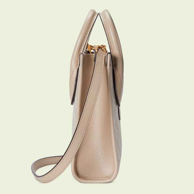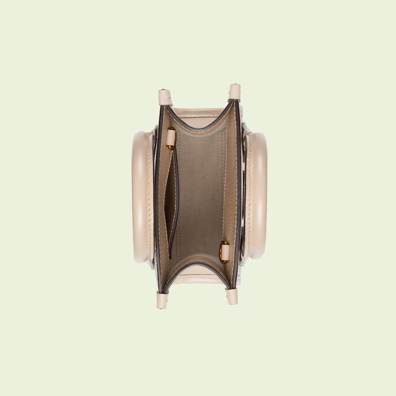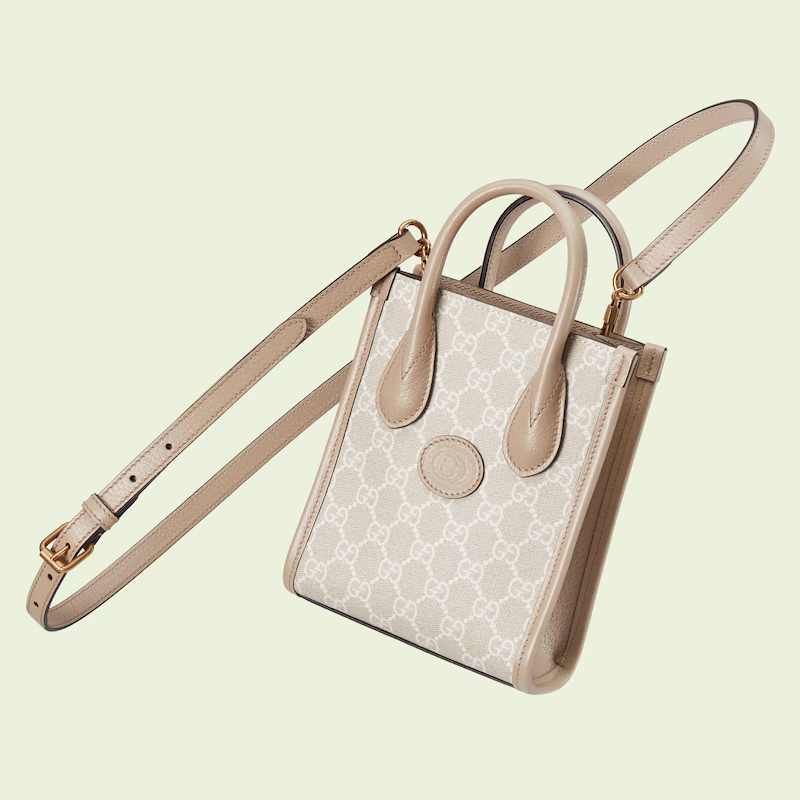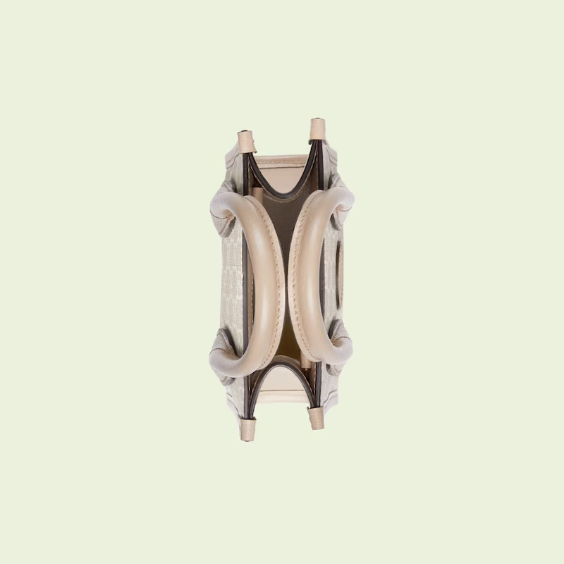 An archival design from the 1930s inspired the GG Supreme canvas, now one of the House's most emblematic materials. Traditionally presented in beige and ebony, it appears here in a beige and white combination, an ode to timeless pieces and everlasting design. The mini tote bag is complete with an oatmeal leather trim and an Interlocking G tag.
