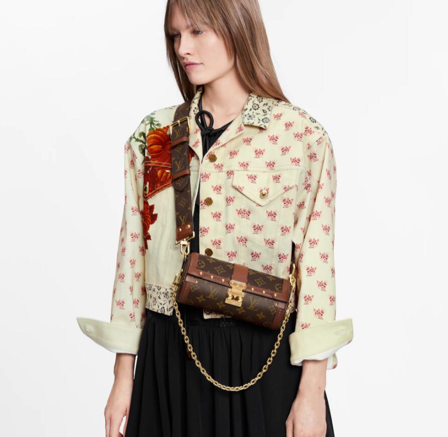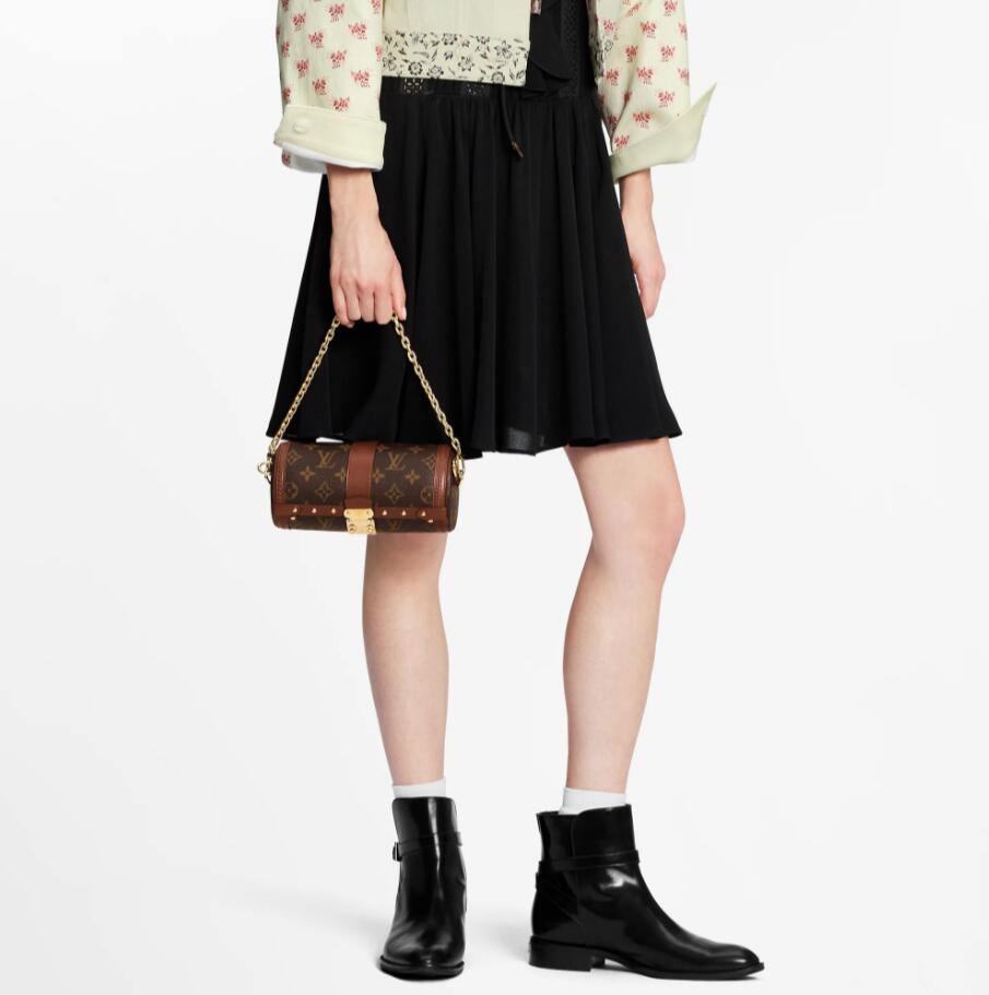Nicolas Ghesquière introduces a new shape – both feminine and casual – inspired by Louis Vuitton’s archives: the Papillon Trunk handbag. The iconic Papillon duffle bag is transformed into a trendy semi-rigid baguette. The S-Lock, LV-embossed trunk trimmings and studs pay homage to the House’s trunkmaking beginnings.