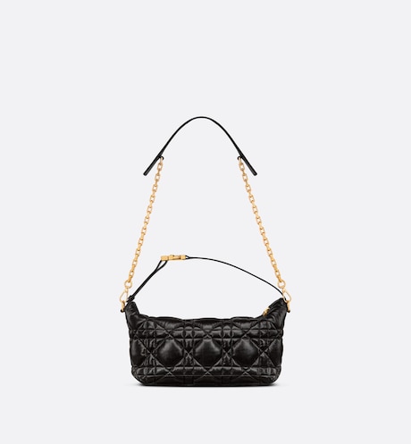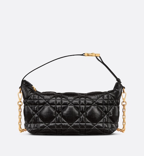New this season, Maria Grazia Chiuri imagines the Nomad bag, a modern, hybrid design. Crafted in black calfskin, it is characterized by the unique quilted effect of its Macrocannage stitching. The versatile accessory features a short handle with a military-inspired 'CD' buckle. The small bag's handle can be adjusted for use as a shoulder strap, while the detachable chain is completed by a leather insert, offering comfort and elegance for multiple wears.