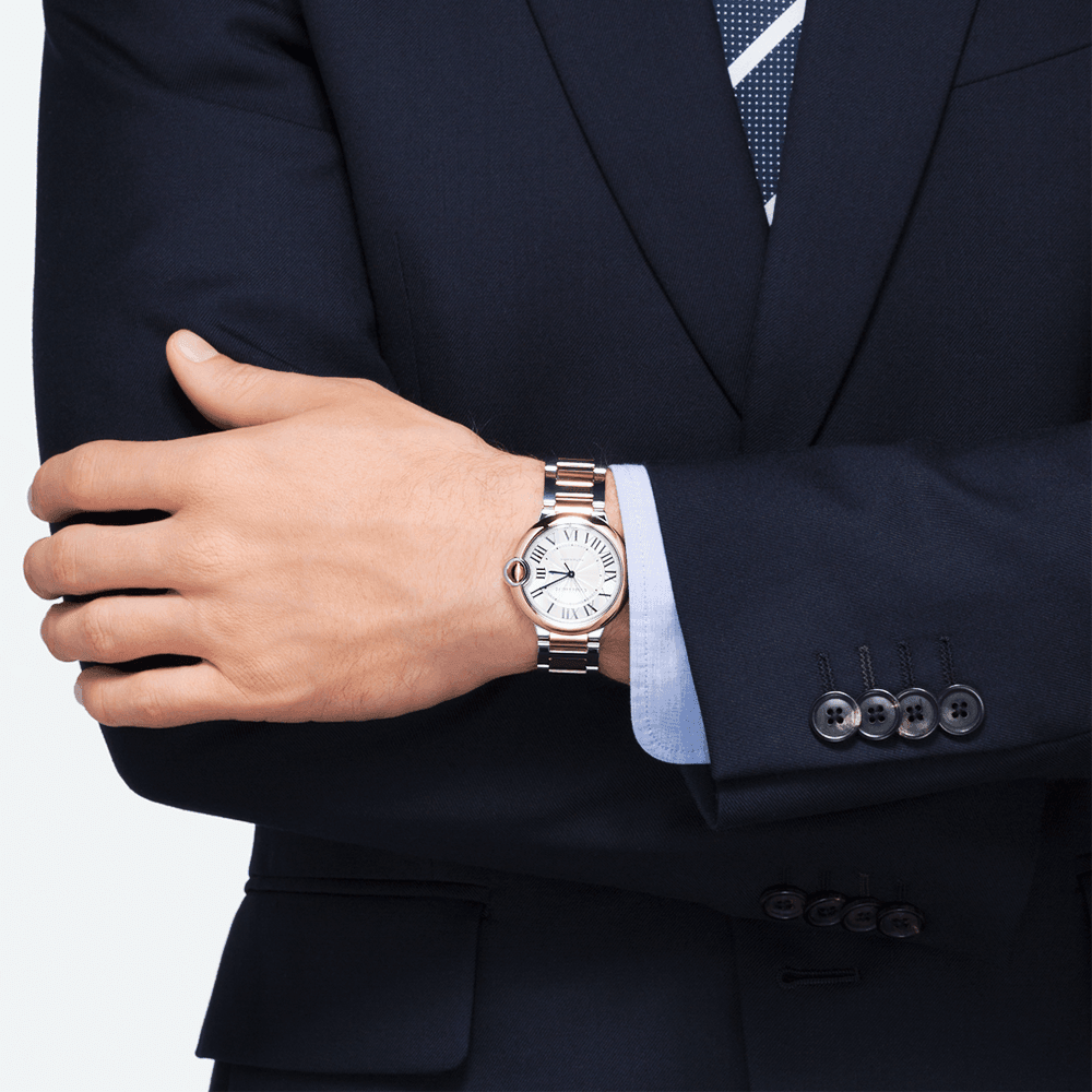 CartierBallon Bleu de Cartier 36mm 18ct Pink Gold and Steel WatchW2BB0033. Stainless steel & 18ct pink gold 36mm case and bezel all on a matching two-tone steel & 18ct pink gold bracelet. This watch has a silvered guilloche dial with black roman numerals and blued steel hands. Water resistant up to 30m and sapphire crystal glass. Self-winding mechanical movement.