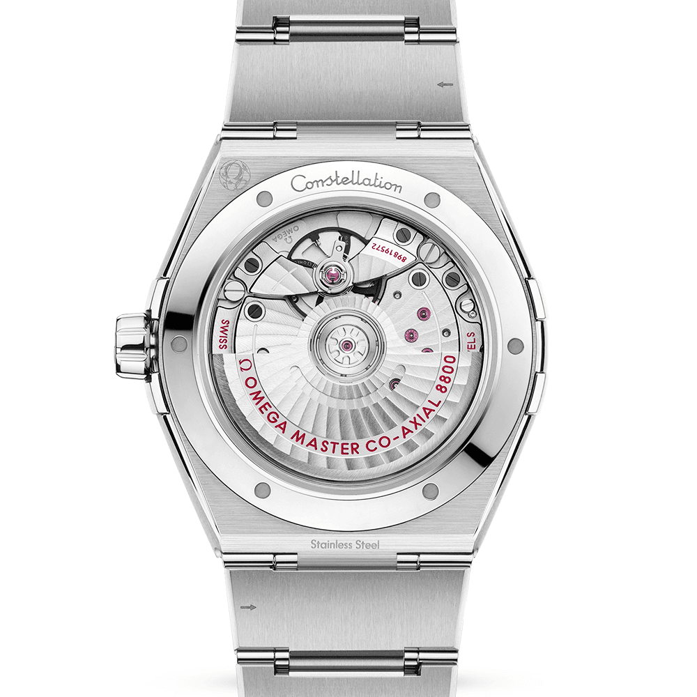 The timeless design of the Omega Constellation watch prevails with this 39mm model crafted from robust stainless steel. Its distinct bezel equipped with the famous “Griffes” or claws is presented with engraved Roman numerals that surround a baton hour track. The intense black colour of the dial Features luminous-coated central hour and minute hands to assist with effortless timekeeping in the dark. The dial also Features a visible date window at 6 o’clock. The Omega Constellation Co-Axial Chronometer watch is powered by the Co-Axial Master Chronometer Calibre 8800, which passes METAS standard and sits behind a sapphire-backed case. This exhibition lens grants a superb view of the self-winding movement whilst it performs. The movement provides a 55-hour power reserve whilst secured inside a 50-meter water resistant case. The movement is fitted with silicone parts that resist the harmful effects of magnetic fields up to 15,000 gauss. The Omega Constellation watch wraps effortlessly around the wrist with a robust stainless bracelet with a folding clasp. Lastly, the Omega star and indexes featured on the watch’s sun-brushed black dial are crafted from 18ct white gold.