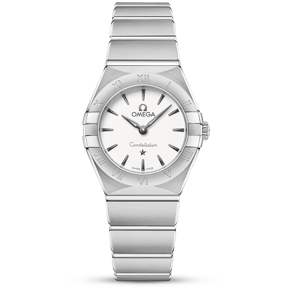 Distinguishable for its stylish mono-rang bracelet and iconic claw-adorned bezel – the Omega Constellation watch is a timeless companion for wearing every single day of the week. Its robust case construction offers a weather-resistant and corrosion-resistant housing for a reliable Swiss-made quartz movement that performs within. The 30-meter water resistant watch is equipped with a sealed caseback engraved with the Constellation Observatory medallion. The front of the case Features a domed lens crafted from scratch resistant and anti reflective sapphire crystal glass. Underneath this pane of glass is a stunning white silver dial equipped with blackened hands, stick markers and the iconic Constellation star motif. The lady’s Omega Constellation watch measures a 35mm diameter and is powered by a remarkably accurate Swiss-made quartz movement. Securing to the wrist, the Omega Constellation Quartz watch Features an integrated mono-rang bracelet crafted from matching stainless steel with a foldable clasp that has been stamped with the iconic Omega brand logo.