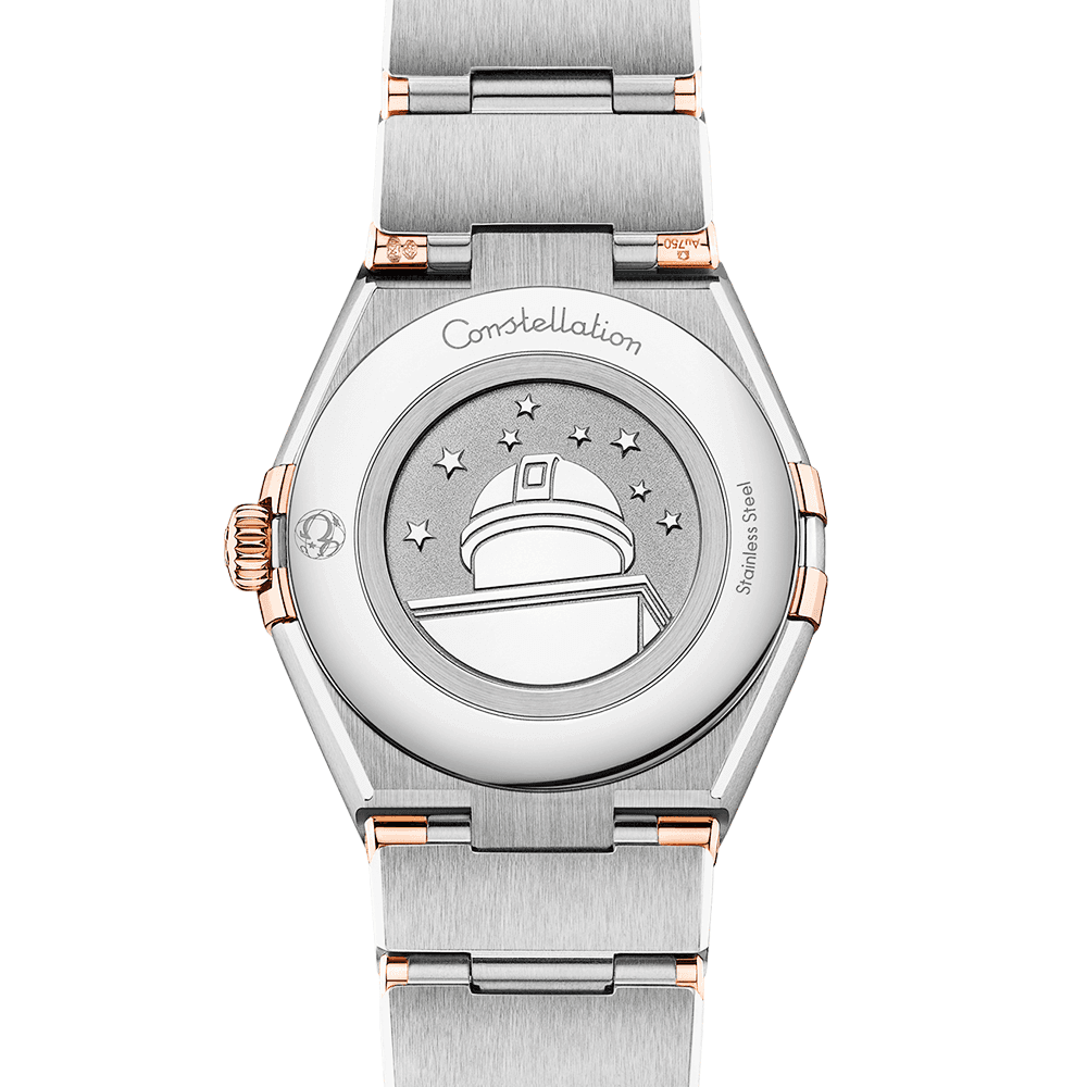 Crafted from a mix of stainless steel and the brand’s proprietary 18ct Sedna gold – this lady’s Omega Constellation Quartz watch imparts a sense of elegance and timelessness with its luxurious design. The model developed for the female wrist, measures a 28mm diameter and has been integrated with 30-meter water resistance. It Features a domed sapphire crystal glass top for granting a clear view into the dial without any undesirable glare from the sun. The watch Features a stunning mother of pearl dial adorned with matching 18ct Sedna gold hands and an hour track represented in round brilliant-cut diamonds. The beautiful lady’s Omega Constellation Quartz watch is powered by a reliable Swiss-made quartz movement which sits behind a sealed caseback engraved with the Constellation Observatory medallion. The traditional Roman numeral markings engraved upon the surface of the watch’s 18ct Sedna gold bezel are a distinct feature of the Omega Constellation watch, as is the mono-rang bracelet which wraps around the wrist. The bi-colour stainless steel and 18ct Sedna gold link bracelet secures with a foldable clasp engraved with the famous Omega logo, offering a luxurious finish for enjoying alongside elegant and professional attire alike.