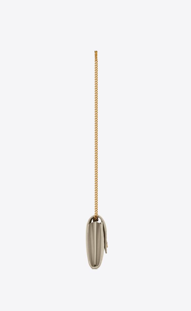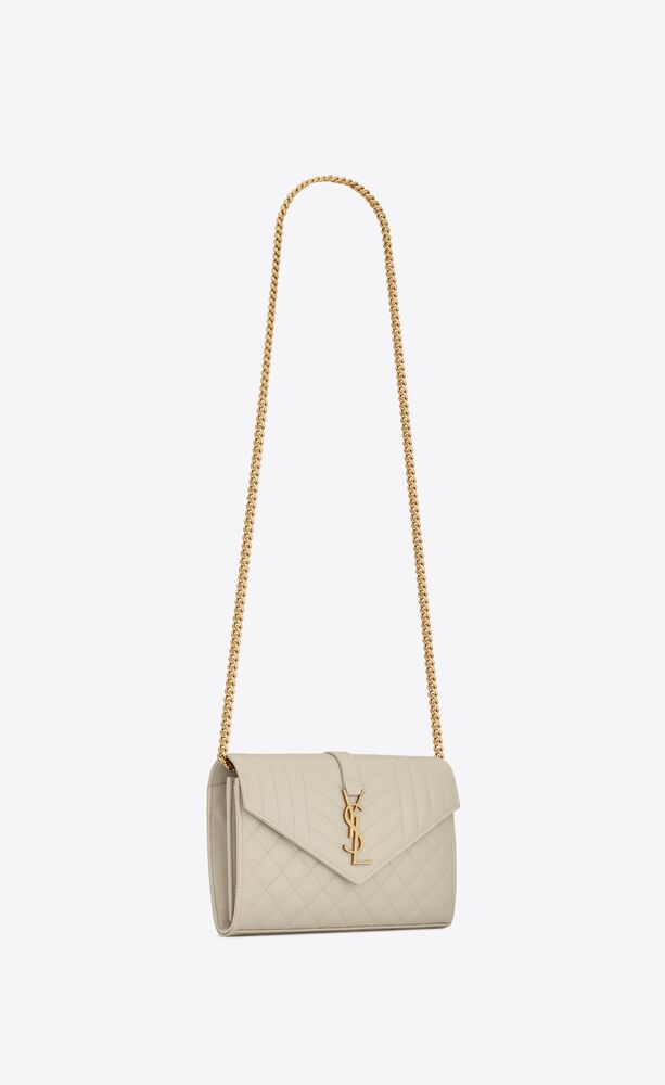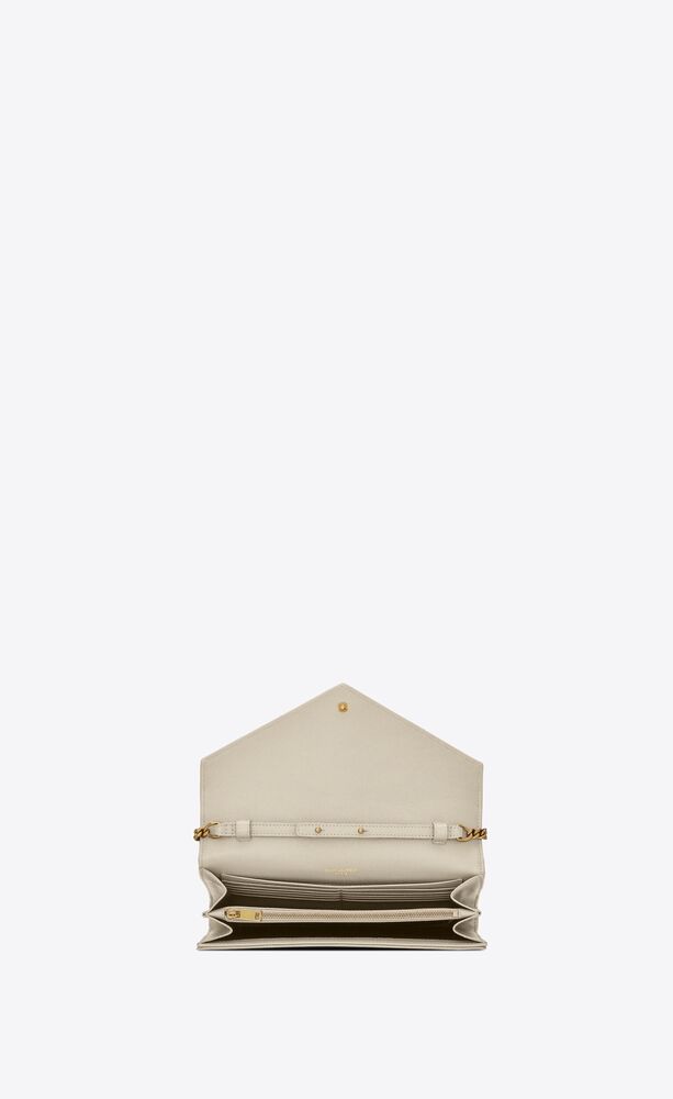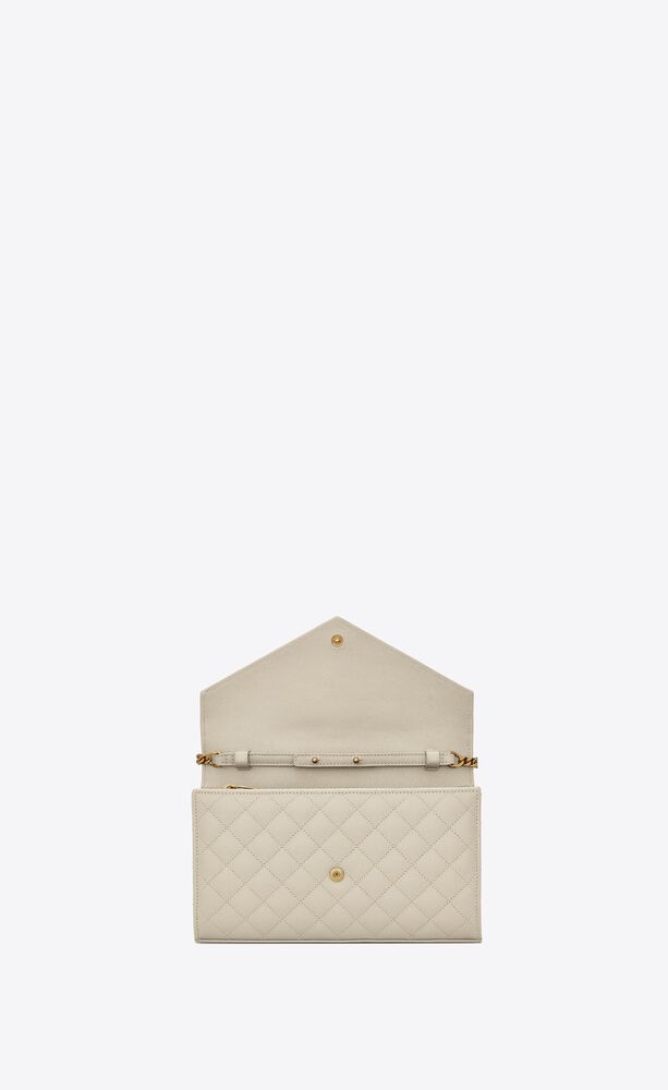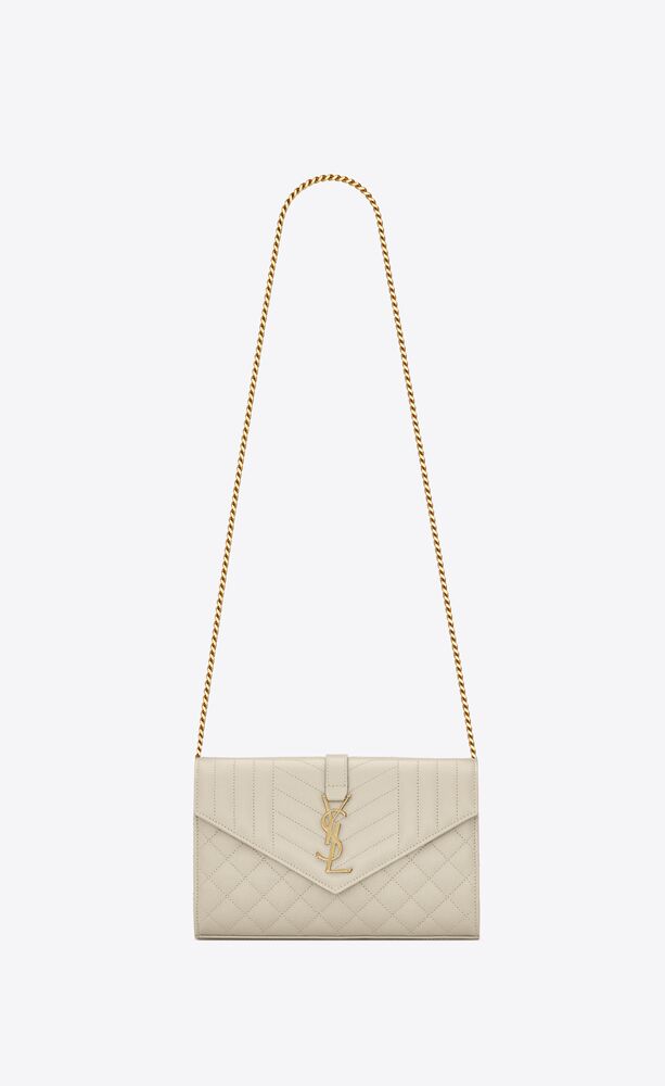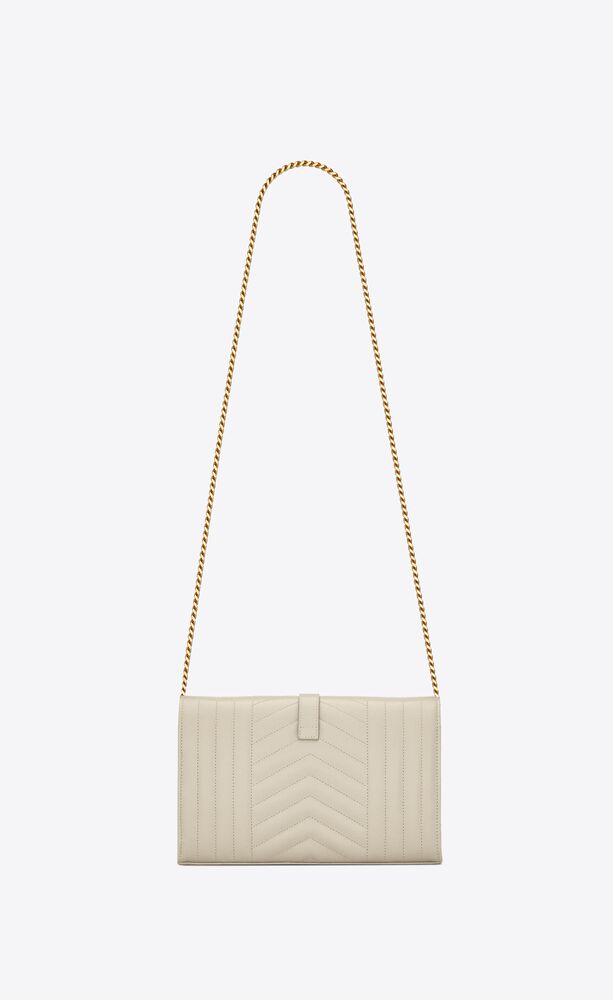 CHAIN WALLET WITH A FRONT FLAP, MADE WITH METAL FREE LEATHER AND DECORATED WITH METAL YSL INITIALS AND A MIX OF VERTICAL, CHEVRON AND DIAMOND QUILTED OVERSTITCHING, FEATURING A DETACHABLE CHAIN STRAP.